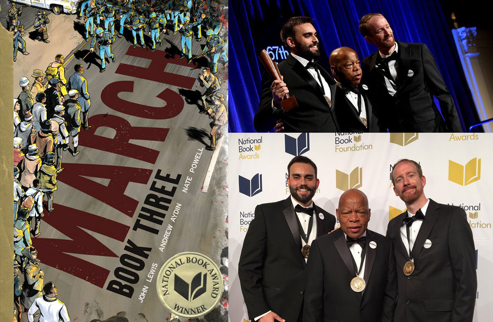 NEW YORK (November 17, 2016) — Congressman John Lewis, Andrew Aydin, and Nate Powellreceived an unprecedented honor last night, as their book March: Book Three became the first graphic novel to ever receive the National Book Award.