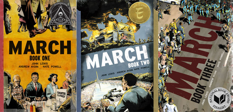 2016-10-06-march-trilogy-nba-finalist-small_lgYesterday the National Book Foundation announced the finalists for the 67th AnnualNational Book Awards — including, for the first time since 1957, a sitting member of Congress.