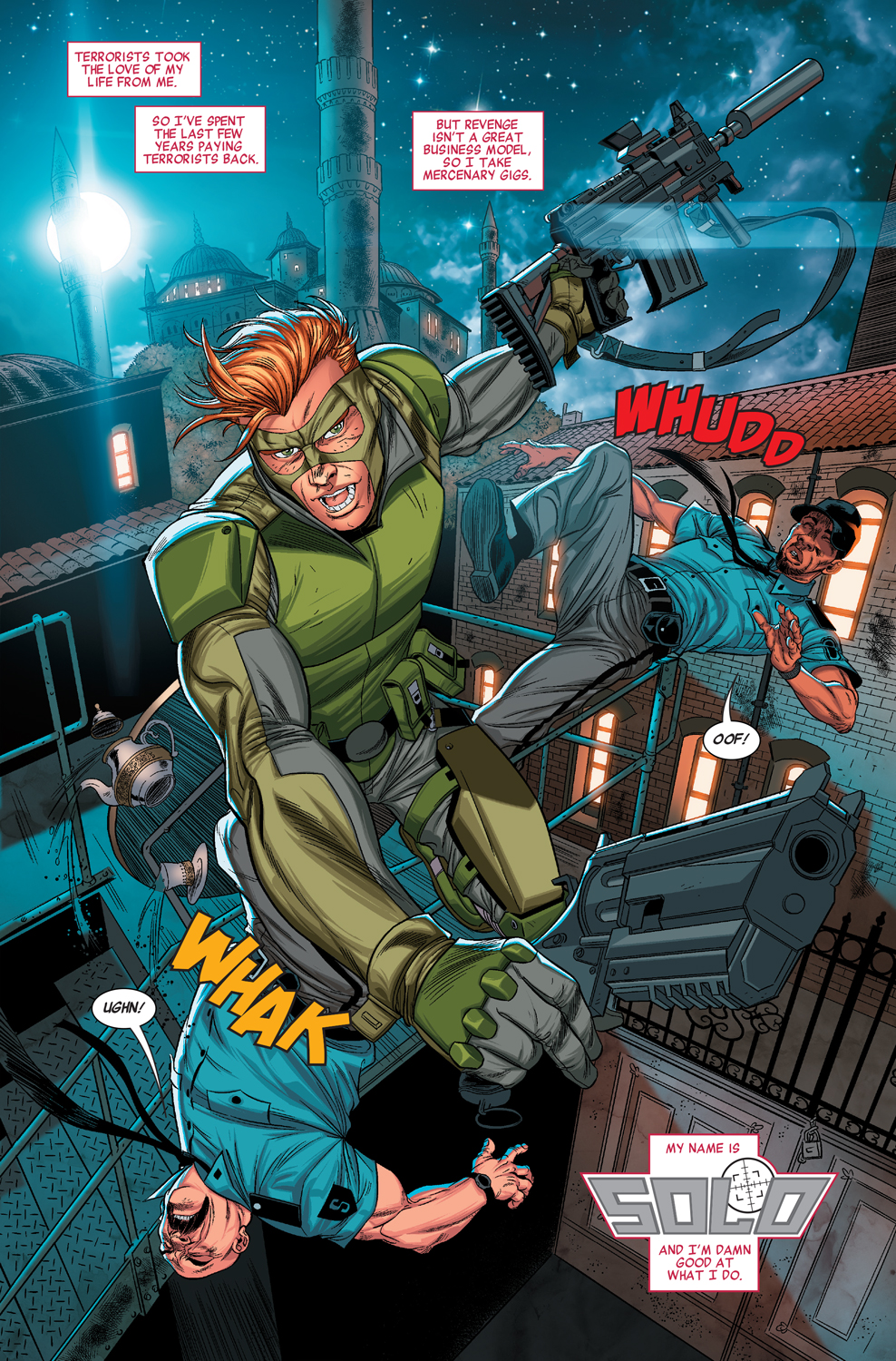New York, NY—September 13th, 2016 — This October, one of the founding Mercs for Money is going…solo! That’s right, James Bourne a.k.a Solo is back on his own, right where he belongs! Be there when the action heats up to eleven as SOLO #1 blasts its way into comic shops in October as part of Marvel NOW!. Writers Gerry Duggan (Deadpool) and Geoffrey Thorne (Mosaic) team up with artist Paco Diaz (Thunderbolts) to bring you a high-octane thrill ride across the Marvel Universe. Deadly alien weapons are making their way into the hands of ordinary thugs – and Solo is going undercover to locate the source. As things heat up, Solo may just wish he had some backup! Deadpool and the Mercs for Money was just the beginning. You haven’t seen anything until you’ve met Solo. Be there for his first ongoing series when SOLO #1 comes to comic shops and digital devices on October 12th!