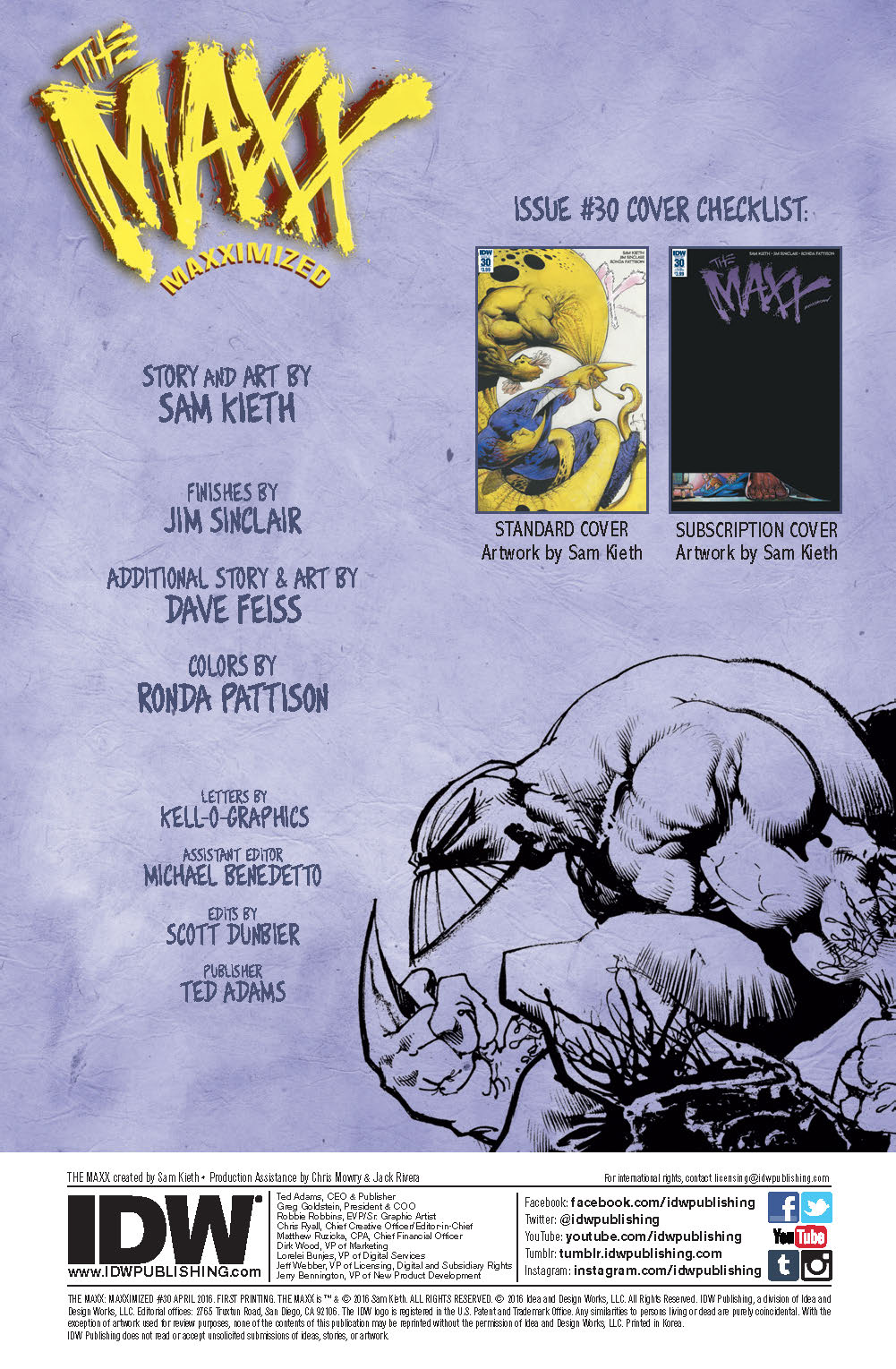 PreviewsIDW Comics The Maxx: Maxximized #30 By Comix Asylum - Apr 12, 2016 0 2214 FacebookTwitterPinterestWhatsApp The Maxx: Maxximized #30 Sam Kieth (w & a & c) Julie’s search for Sara continues in the most unlikely of places. Meanwhile, a secret is revealed that will change Sara forever. FC • 32 pages • $3.99 The Maxx: Maxximized #30 1 of 7
