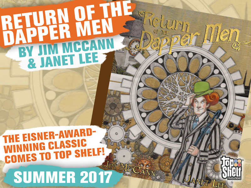 NEW YORK (October 10, 2016) — Return of the Dapper Men, the Eisner-award-winning graphic novel by Jim McCann and Janet Lee, will be republished in a deluxe new edition in summer 2017 from its new home at Top Shelf Productions, an imprint of IDW Publishing.