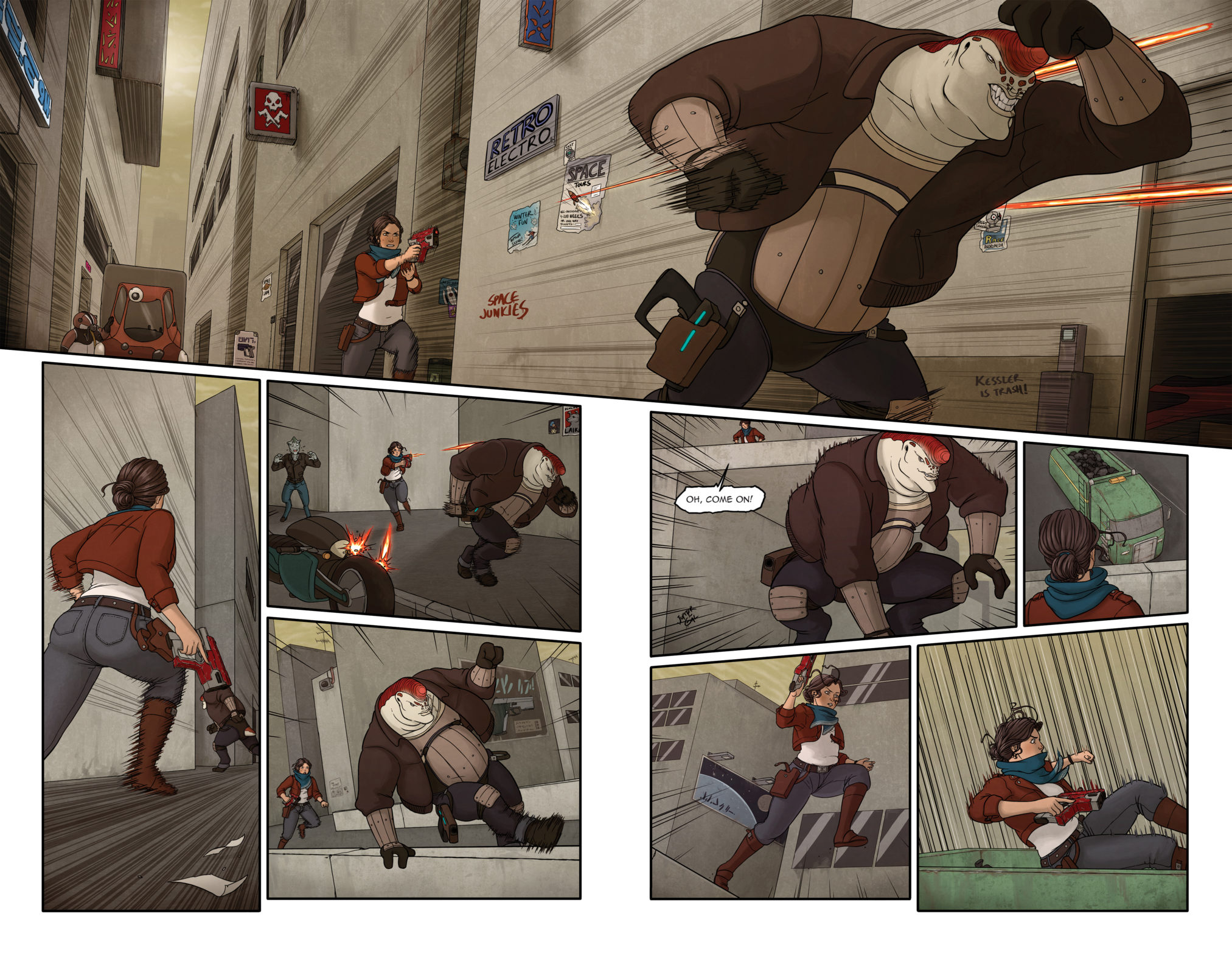 She continues by saying: “When Joge and I began working on GUNCATS nearly four years ago, we set out to make the kind of comic we desperately wanted to read. I was longing, at the time, for more books centered around the magical phenomenon that is female friendship. Cass and Iola travel to hell and back together—many times as a result of their own flaws—and they always come out on the other side even closer than before. Through all the gunfights and aliens and wall-to-wall action, GUNCATS is, at its core, a story about how a pair of BFFs have the tenacity to take on the world (or in this case, the galaxy).”