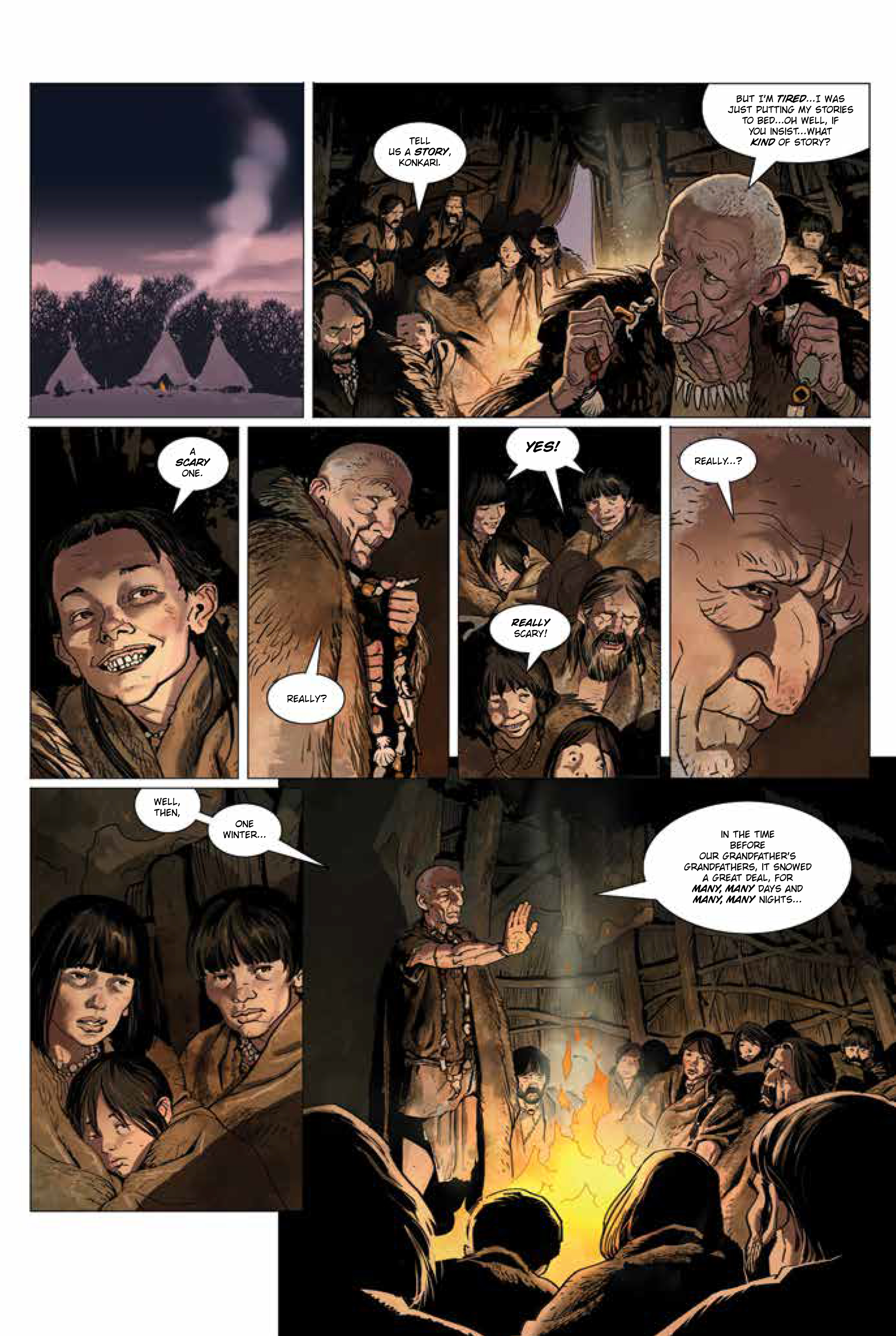 Synopsis: Archaia is proud to present the worldwide debut of the second volume in Ben Haggarty and Adam Brockbank’s stunning series of adventure set 10,000 years in the past. The Kansa tribe live on the eastern shores of Stone Age Britain, where danger is never far away. Step by step, Poika’s journey into manhood continues—caught in a mesh of tribal hunts, gatherings, and feasts determined by the waxing and waning of 13 moons. The boundary between the real and imagined worlds blur as more and more of the Kansa cosmology is revealed in the dreams, nightmares, and ancestral beauty of Mezolith.