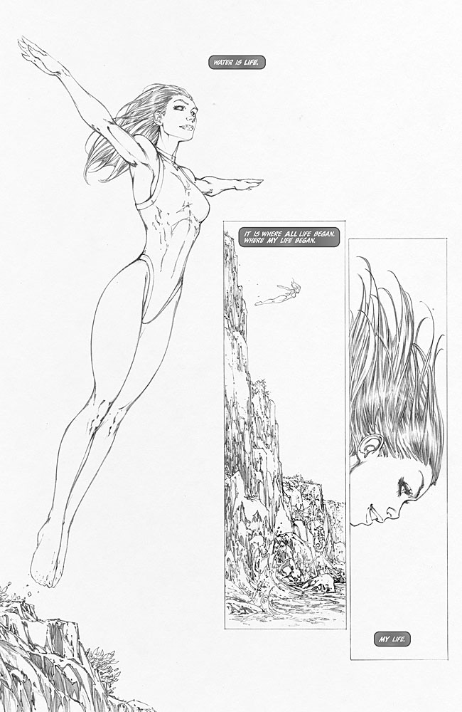 Experience the final Fathom story of legendary creator Michael Turner’s brilliant career in this thrilling new format! Capturing Turner’s original line work showcasing only his breathtaking pencils, this special “Artist Edition” over-sized issue is a must-have for any art fan! Featuring the final Fathom story illustrated by Turner as you’ve never seen it before!