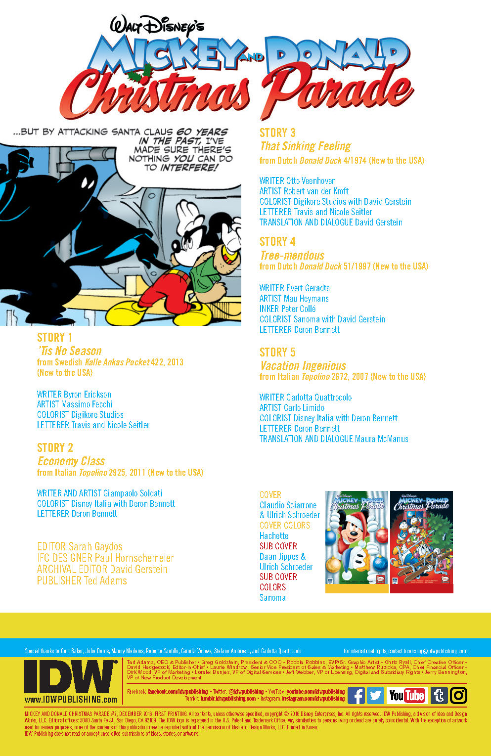- IDW celebrates Christmas with a feature-length thriller by fan favorite creators Byron Erickson and Massimo Fecchi—pitting Mickey and Donald against their most fiendish archenemy!