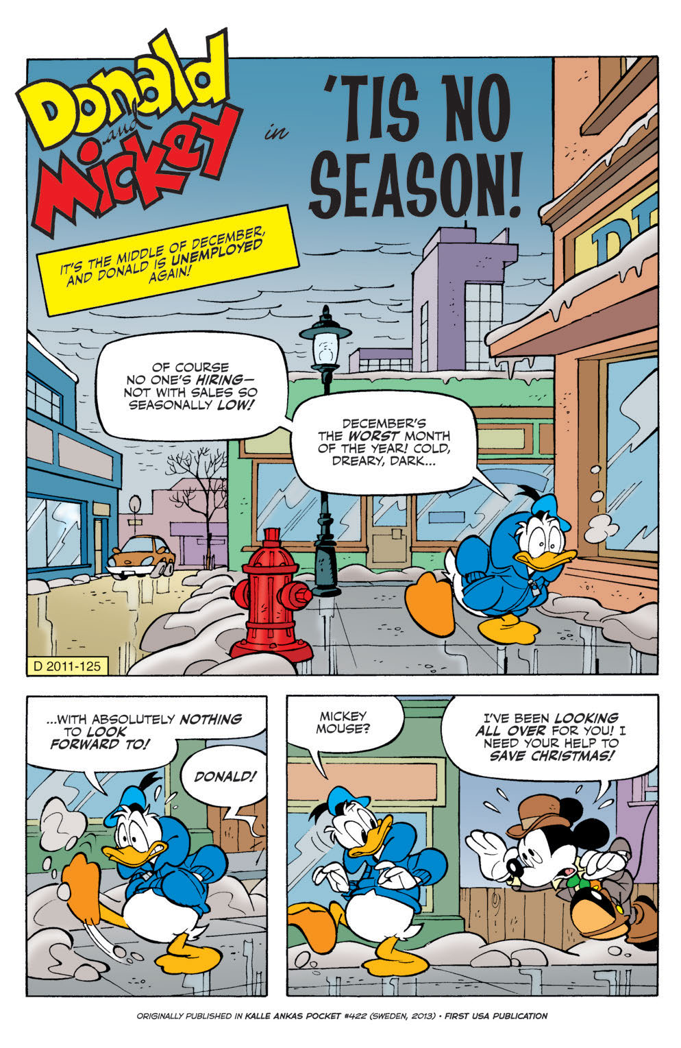 “’Tis No Season!” Mickey and Donald meet up one winter day to find that Christmas suddenly doesn’t exist… and hasn’t been celebrated for sixty years! It’s the start of a time-travel saga full of wacky wormholes, kleptomaniac robot Santas—and a perilous Phantom Blot plot!