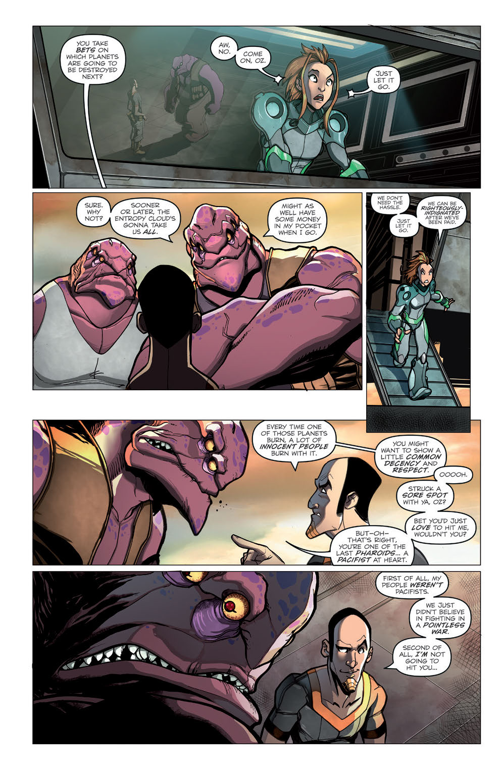 THEY CAME FROM A DYING UNIVERSE! ACROYEAR, SPACE GLIDER, BIOTRON, and their allies are back, on the run from the evil BARON KARZA, and blasting through a universe where magic and science vie for control! With resources dwindling, the long-lost TIME TRAVELERS may hold the key to salvation… but will it mean Armageddon for our world? Collects issues #1–6.