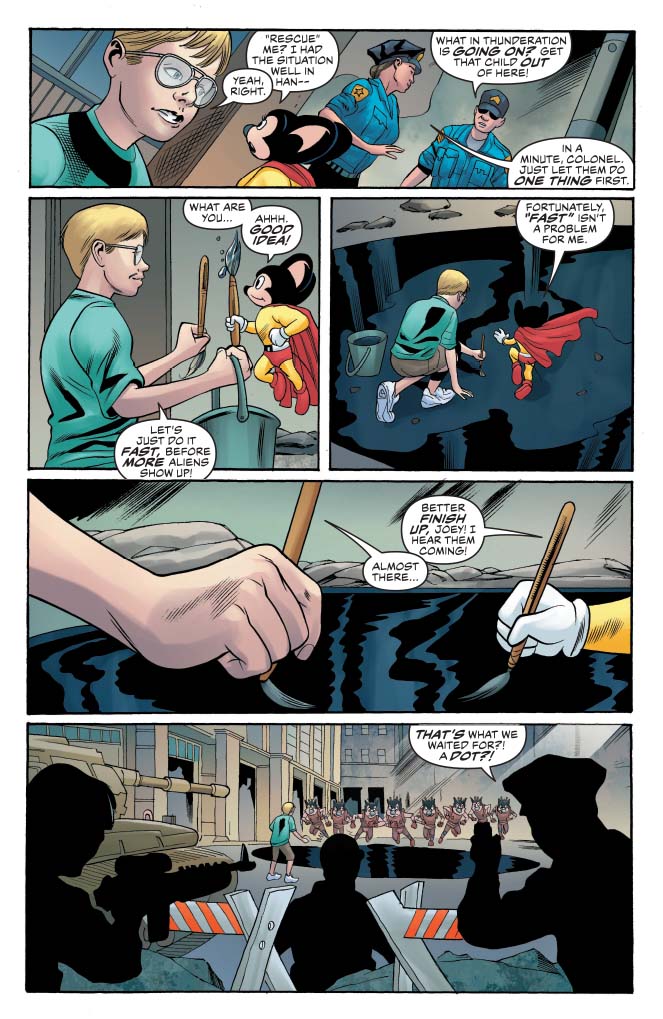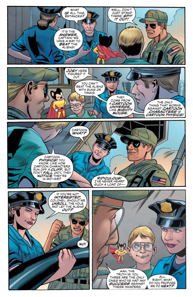 It was bad enough when Mighty Mouse got trapped in the real world. But now, Mouseville faces an alien invasion! And the aliens are invading our world too! How can Mighty Mouse and his human friend Joey possibly defend two worlds and save the day?