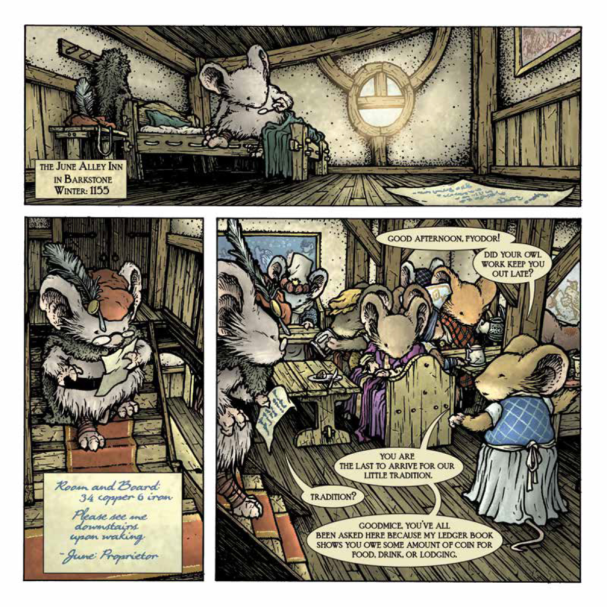 The third volume in the New York Times bestselling and Eisner Award-winning series, Mouse Guard: Legends of the Guard Volume Three features tales written and illustrated by a collection of award-winning and critically acclaimed storytellers personally selected by series creator David Petersen. Once again, patrons at the June Alley Inn are challenged to tell the best Mouse Guard tale, with the winner getting their tab cleared!