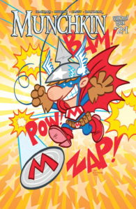 Synopsis: Love is in the air! Oh, wait. That’s not love. THAT SMELLS AWFUL, WHO DID THAT? Snuggle up with this romantic issue of Munchkin, with a special Super Munchkin backup story!