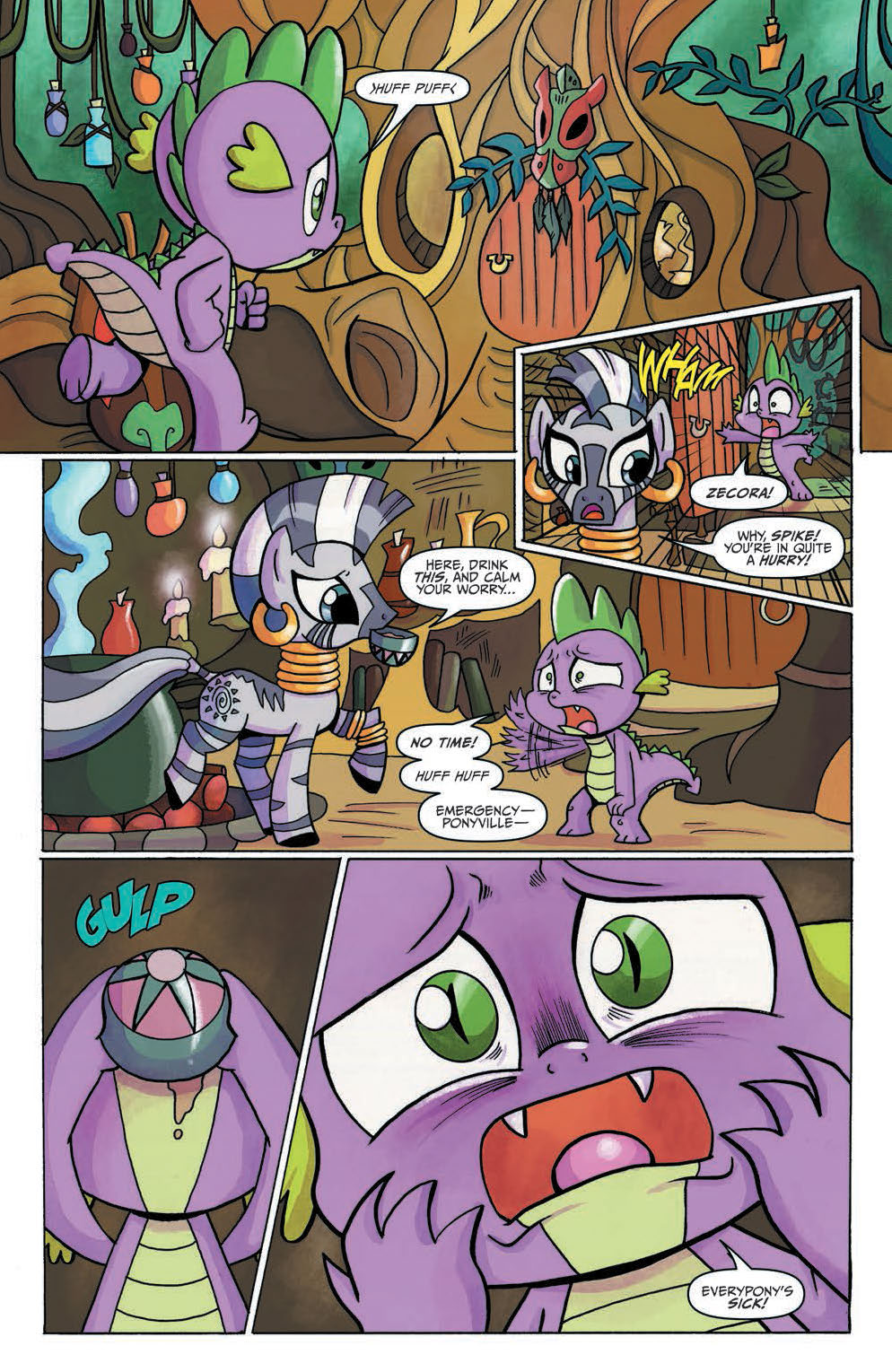 A strange flu has descended over Ponyville! Only two friends find themselves immune… Spike and Zecora? Will the unusual pair be able to find a cure?