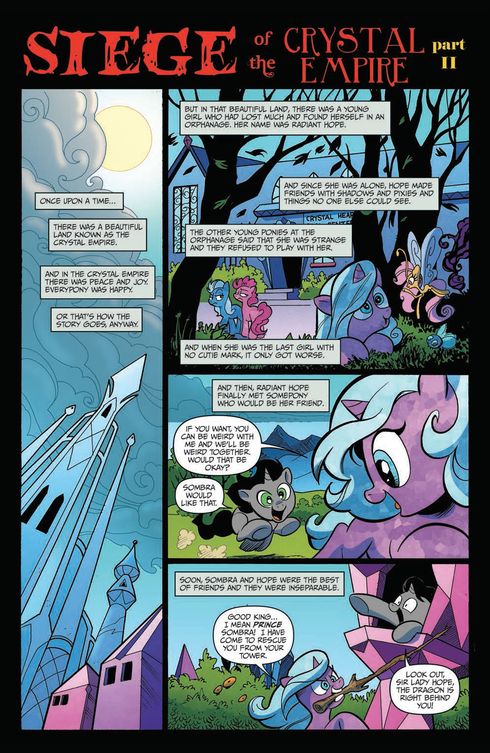 “Siege of the Crystal Empire,” Part 2! The mystery antagonist reveals the next stage in a diabolical scheme! Will our ponies be able to uncover what role Sombra is meant to play before it’s too late?