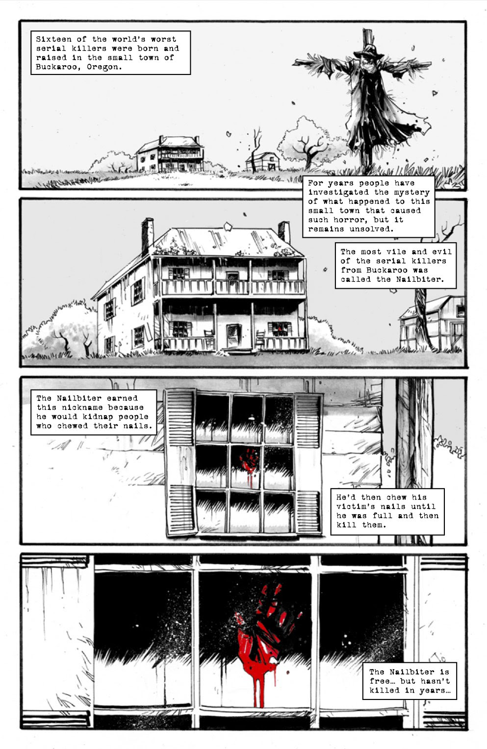Previously in NAILBITER, NSA agent Nicholas Finch found himself roped into the mystery of Buckaroo, Oregon, where sixteen of the world’s vilest serial killers were spawned—and his life has not gotten any simpler since. A new serial killer appeared, for one; not to mention the commitment of more grisly murders and a major revelation about Alice’s parentage.