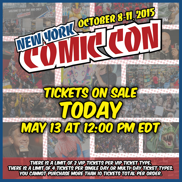Tickets for the New York Comic Con 2015 (www.newyorkcomiccon.com)go on sale today at 12 pm EST. The Javits Center in New York City will be brimming with geek madness as this year’s event promises to be even larger than last year’s with stars from comics, film and television expected to be in attendance. Fans will be treated to special appearances by Adam Hughes (Wonder Woman), Amy Reeder (Rocket Girl), Todd McFarlane (McFarlane Toys), Terry Dodson (Star Wars: Princess Leia) and Batman creative team of Scott Snyder and Greg Capullo. The New York Comic Con runs from October 11 through to the 15th.