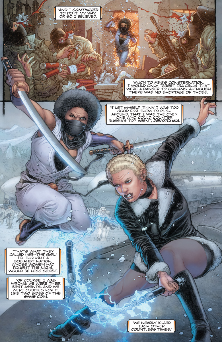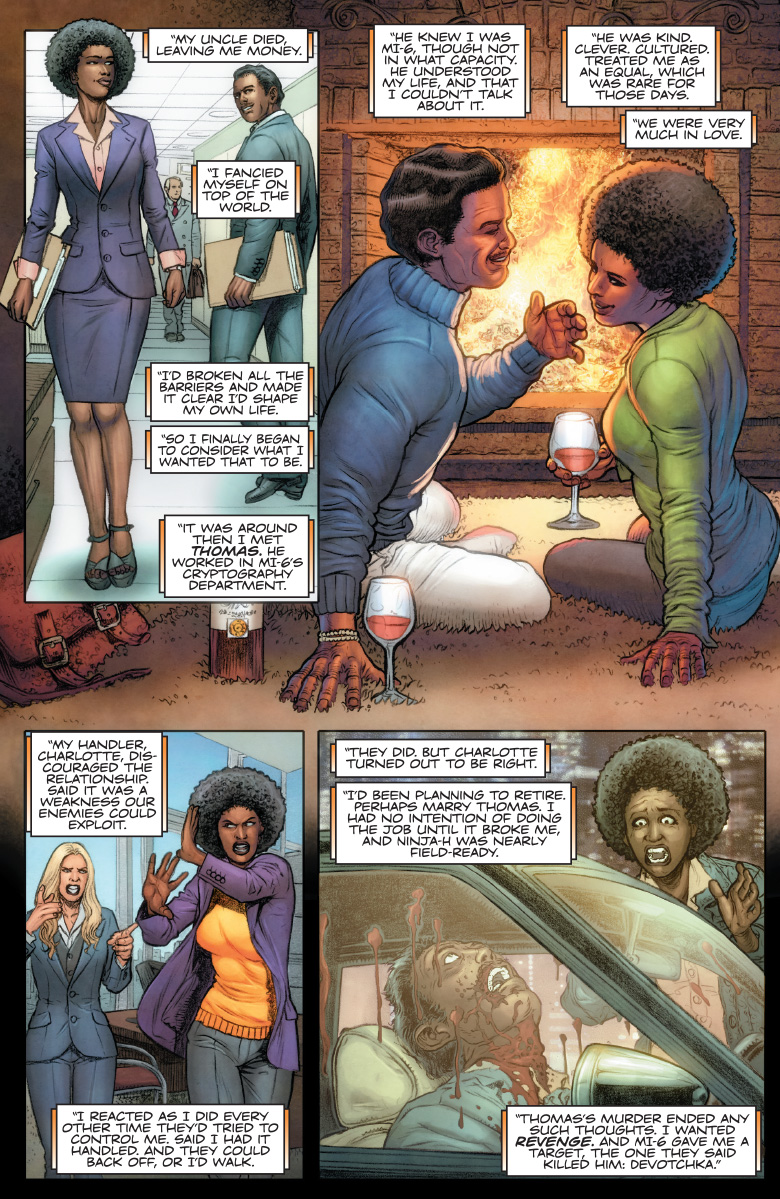 At the height of 1970s Britain, MI-6’s covert Ninja Programme has just activated its first female agent: NINJA-G! As financial instability grips the nation and anarchy brews in the streets, can MI-6’s newest ninja recruit counter a steady tide of double agents, double crosses, and dueling nation states that will take her from the leather-padded corridors of London to the most severe corners of the Soviet Bloc? The life expectancy of a ninja agent is never long…but just how and why are NINJA-G’s missions still impacting Ninjak’s deadly manhunt in the modern day? And could her legacy hold the secret to decoding the murders of the Ninja Programme’s last surviving members – before Colin King is scratched off the list once and for all?