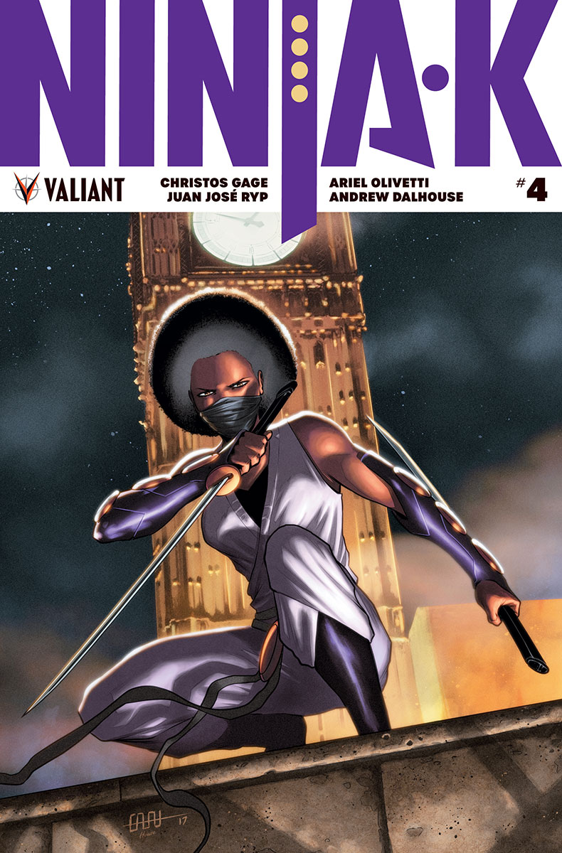 Plus: Continuing in NINJA-K #4, Valiant’s ninja mastermind Christos Gage joins forces with comics veteranAriel Olivetti (Incredible Hulk) for the next harrowing chapter of an essential back-up feature chronicling the origin of Britain’s secret weapon of World War I… The mysterious NINJA-A!