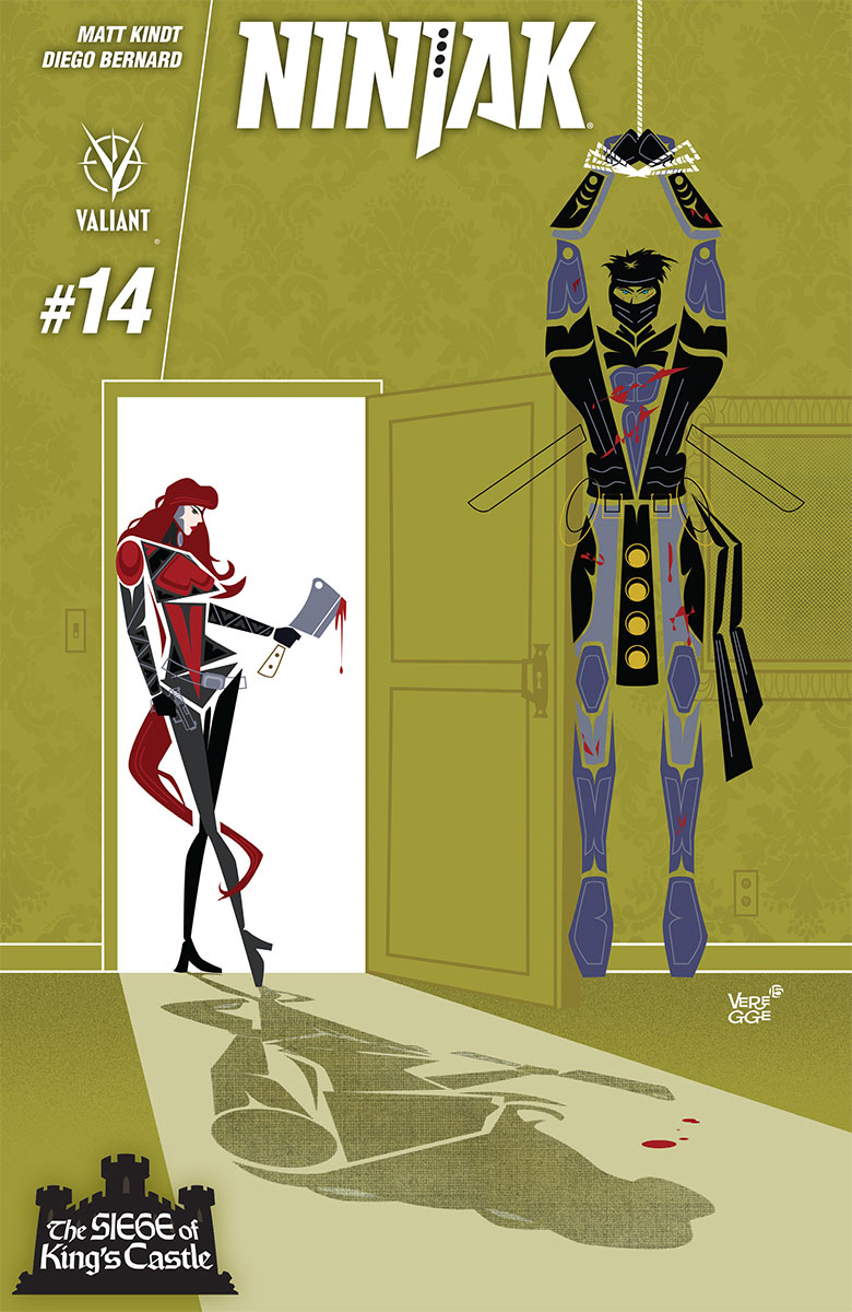 In the aftermath of “OPERATION: DEADSIDE”, the next great Valiant epic of 2016 starts here as Matt Kindt and Diego Bernard unleash a game-changing gauntlet of deadly surprises for “THE SIEGE OF KING’S CASTLE” – beginning in NINJAK #14! Featuring covers by Jelena Kevic-Djurdjevic (Thor),Mike Choi (X-Force), Jeffrey Veregge (Red Wolf), Clayton Henry (HARBINGER WARS), Andres Guinaldo (Justice League Dark), and Matt Kindt (Mind MGMT), the darkest days of Colin King’s short and bloodied life are about to begin when “THE SIEGE OF KING’S CASTLE” takes hold…only inNINJAK #14!