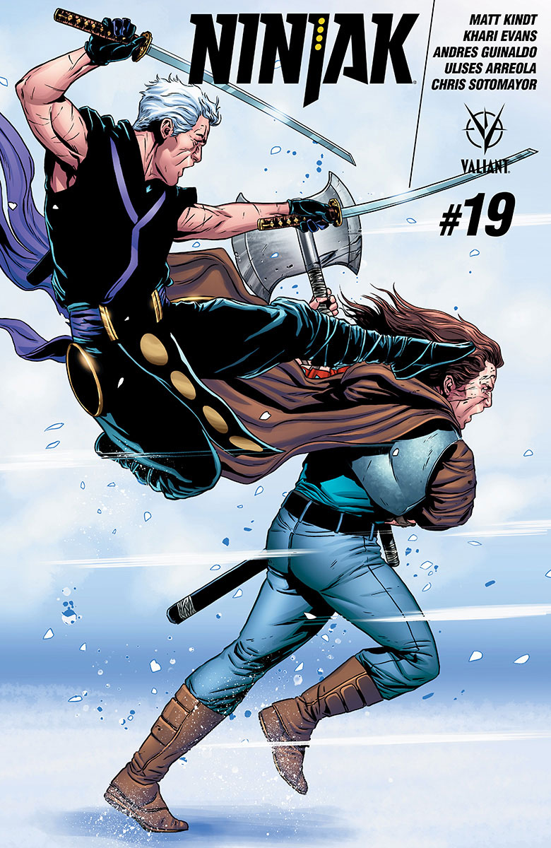 Riddled with an uncanny disease in the present, Colin King has seen what the future holds – and it is death! Decades from today, destruction looms…and Ninjak and the Eternal Warrior will be our only hope! But even after years on the battlefield, are these weathered veterans still strong enough to forestall an evil that now threatens all of humanity? Glimpse the future of Valiant’s two most dangerous men here as Ninjak and the Eternal Warrior baptize their formative partnership in the blood of many men!