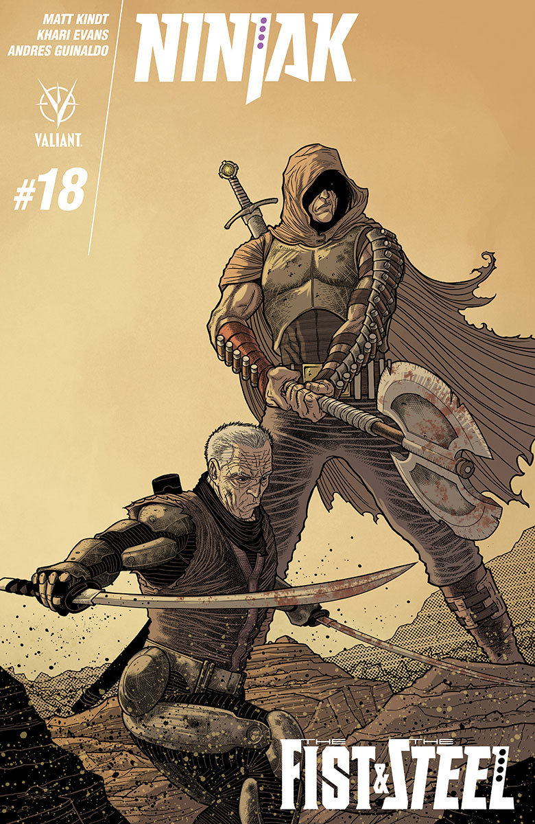 As revealed at Comic Vine, Valiant is proud to announce “THE FIST & THE STEEL” – AN ALL-NEW JUMPING-ON POINT beginning this August in NINJAK #18! Many years from today, see where the battle-scarred road has taken Valiant’s deadliest operative as writer Matt Kindt (4001 A.D., DIVINITY II) and acclaimed artists Khari Evans (HARBINGER) and Andres Guinaldo (Justice League Dark) deploy a seasoned Colin King into an unknown tomorrow! He may not be as fast or as strong as he once was, but with the Eternal Warrior at his side, Ninjak will show the world that his steel is as sharp as ever!