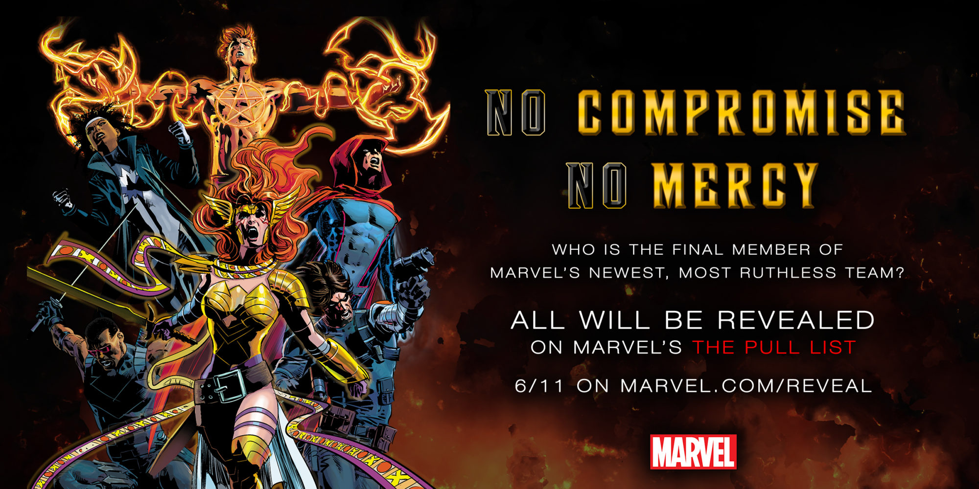 Who is the final member of Marvel’s most ruthless team? All will be revealed on Marvel’s The Pull List June 11. Go to www.Marvel.com for the reveal.