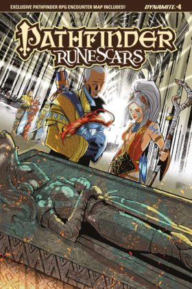 Still reeling from the death of one of their own, the Pathfinder heroes must chase a rogue Hellknight sorcerer to the foot of an ancient monument in the city of Korvosa. Inside lies a magical storehouse of treasures from a forgotten age, including the fabled Runescar Stylus capable of waking an army of petrified spellcasters. Yet the ancient Runelords didn’t leave their treasures unguarded… Dungeon-delving excitement abounds in this wisecracking adventure from Pathfinder co-creator James L. Sutter, with art from Ediano Silva.