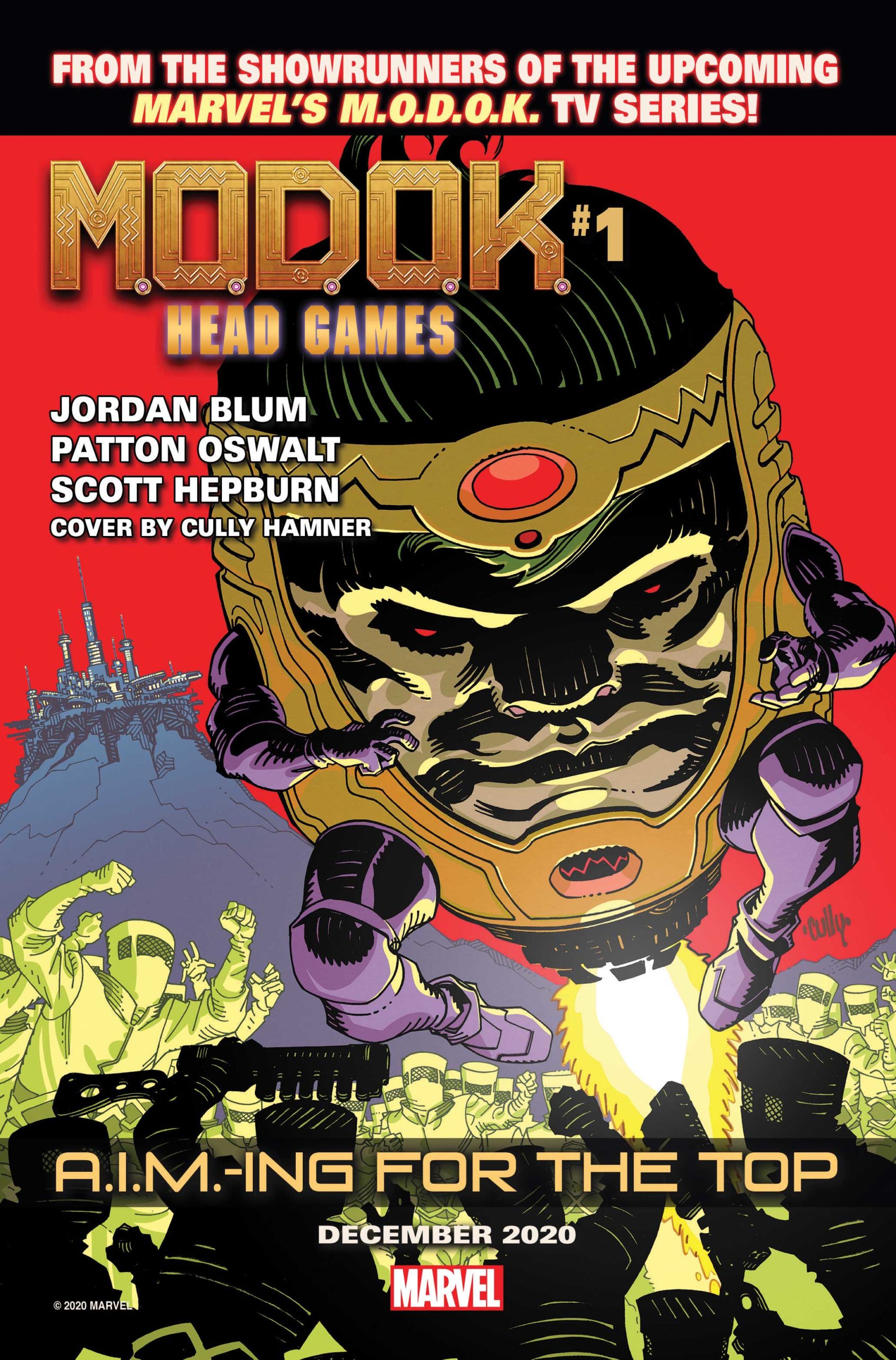 New York, NY— October 30, 2020 — The showrunners behind the upcoming Marvel’s M.O.D.O.K. series on Hulu will also be teaming up for a journey inside the mind of M.O.D.O.K. in a brand new comic series! On sale December 2nd, M.O.D.O.K. HEAD GAMES by Patton Oswalt and Jordan Blum will feature the ruthless and brilliant leader of the terrorist organization AIM doing what he does best—outsmarting and outmaneuvering the heroes of the Marvel Universe! But when he begins to be haunted by memories of a family he never had, will they cause M.O.D.O.K. to lose his freakishly large mind for good? See what the masterminds behind the series had to say in this exclusive video interview, featuring never-before-seen interior pages from series artist Scott Hepburn!