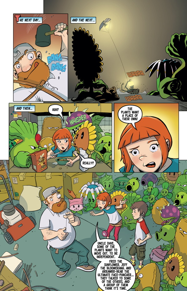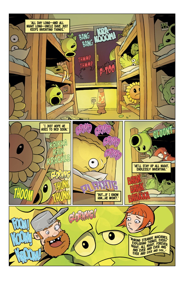 A group of young plants move out of Crazy Dave’s garage and into his huge family mansion in Neighborville. But why is Dr. Zomboss spying on them? Artist Andie Tong joins writer Paul Tobin for this three-issue arc! Bonus stories by Karim Friha, Nneka Myers, and others! Collects Plants vs. Zombies #4–#6.