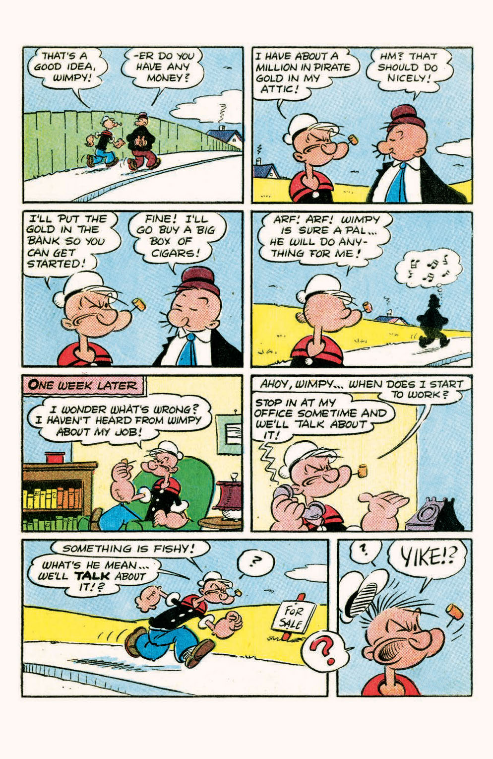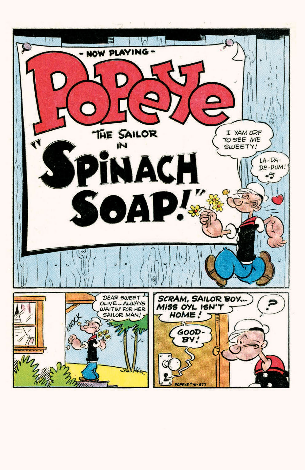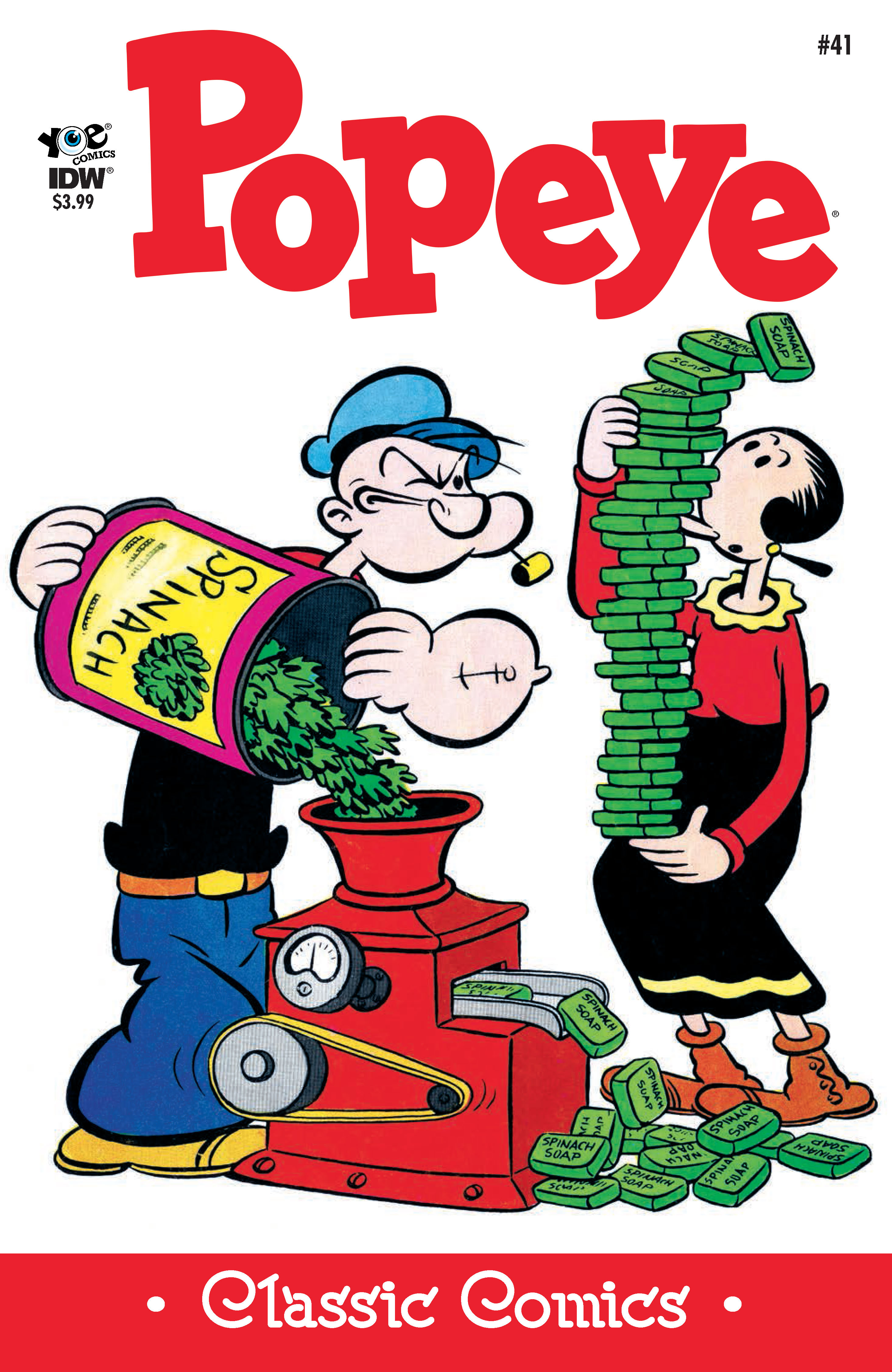 This Issue of Popeye Comics raises the bar—bar of spinach soap! ARF! ARF! Wimpy becomes a greedily capitalist head of his own company and Popeye becomes his wage-slave employee. Reads like today’s news! Plus more great stories: Sucker’s Gold, O.G. Whatsnozzle, Horse Student and a LOL Swee’ pea comic!