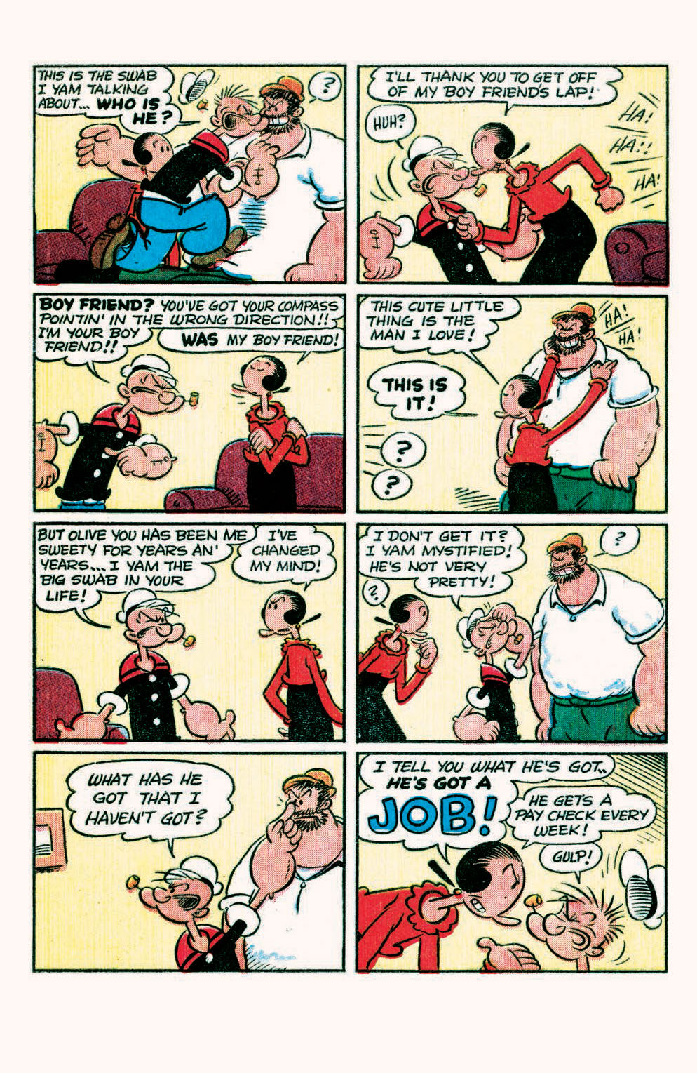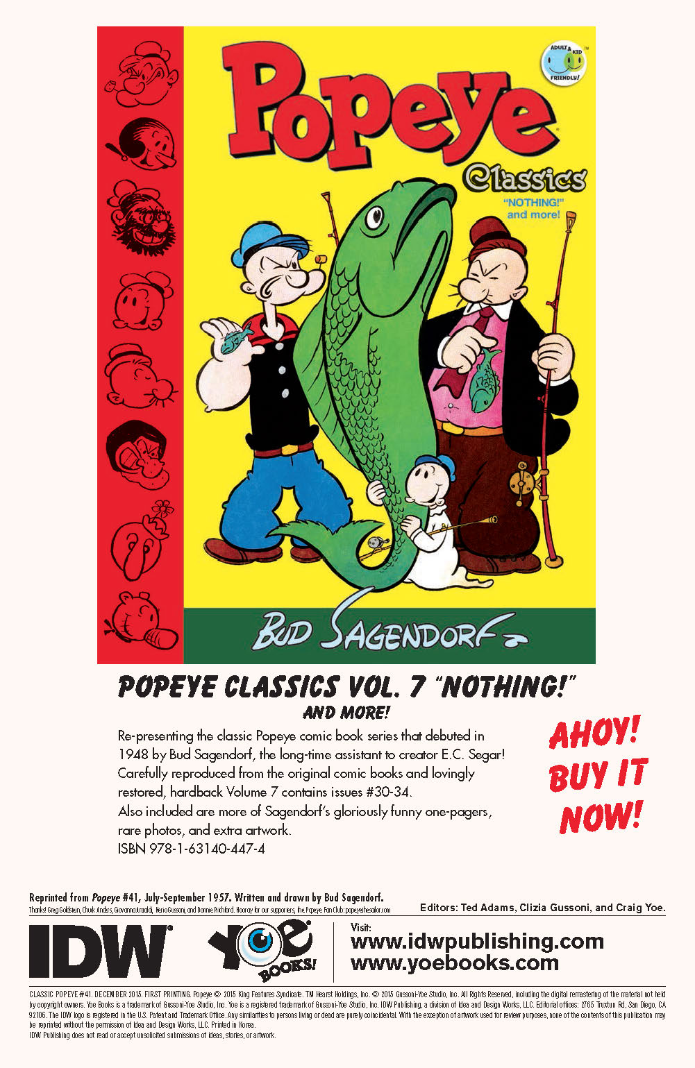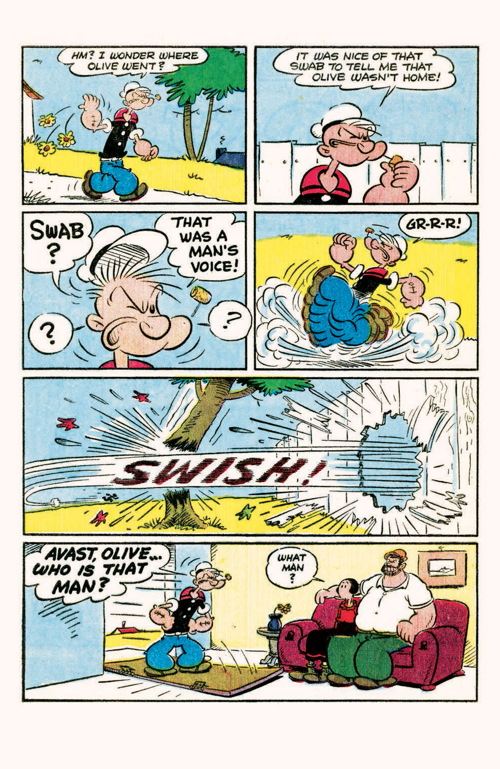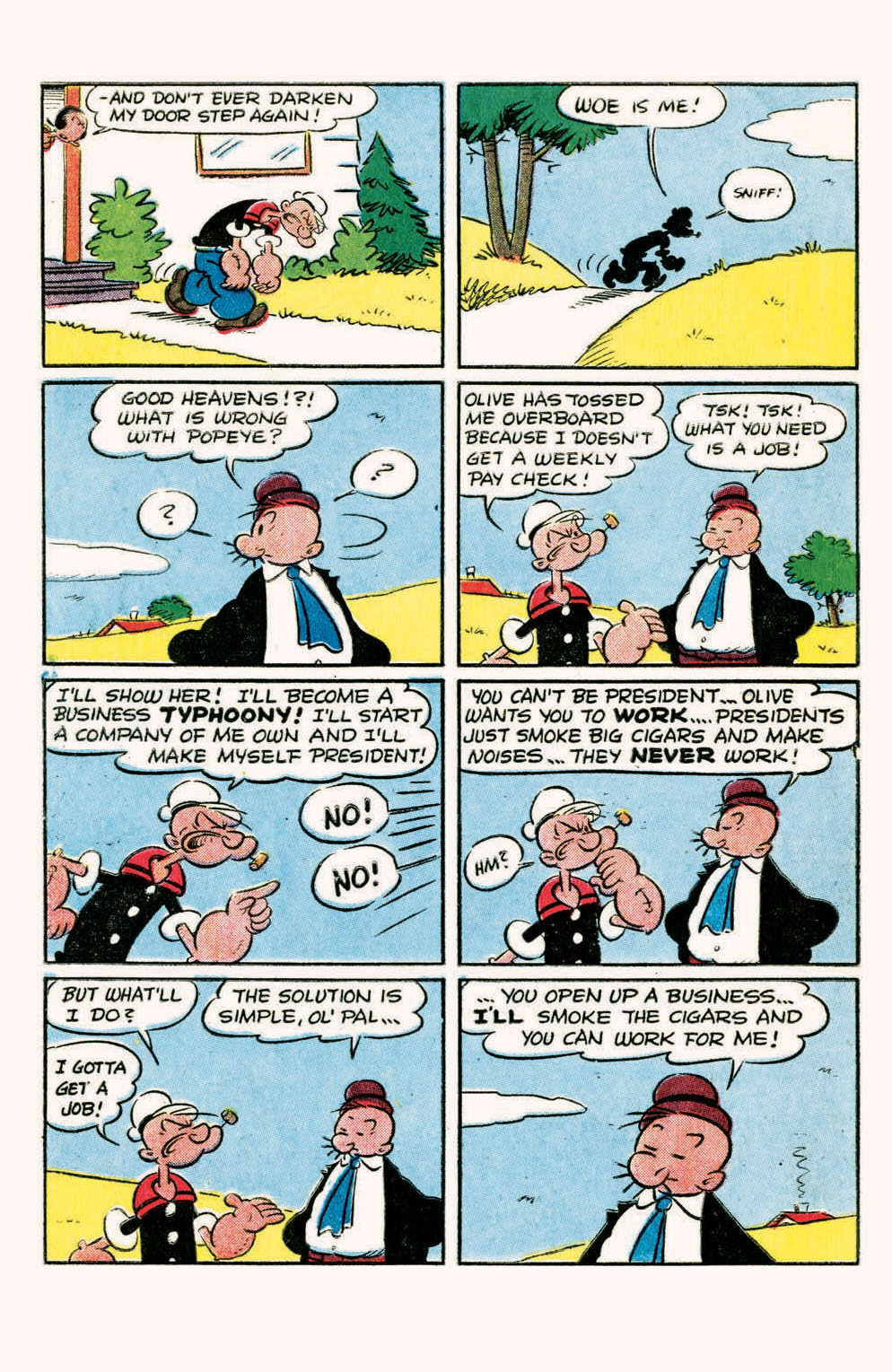 This Issue of Popeye Comics raises the bar—bar of spinach soap! ARF! ARF! Wimpy becomes a greedily capitalist head of his own company and Popeye becomes his wage-slave employee. Reads like today’s news! Plus more great stories: Sucker’s Gold, O.G. Whatsnozzle, Horse Student and a LOL Swee’ pea comic!