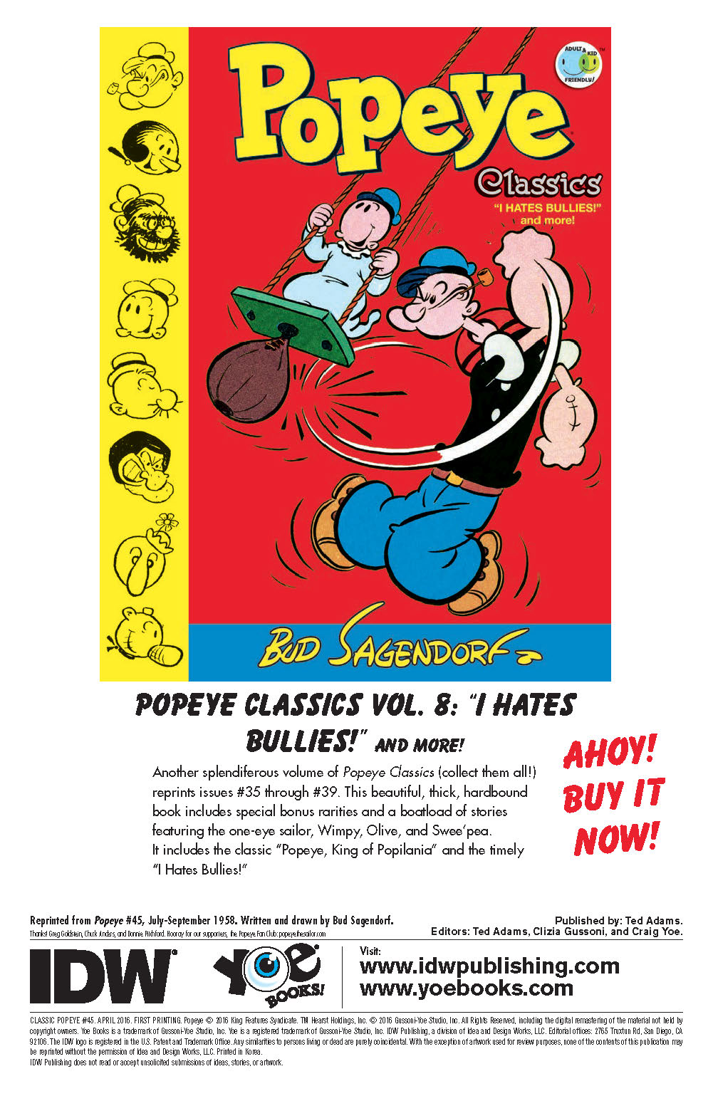 People Magazine proclaims, “Sagendorf did not create Popeye, but no one has a better claim to the title of stepfather!” This laugh and thrill-packed issue features “Moon Rocket,” a special tale of science fiction a genre both E.C. Segar and Bud Sagendorf loved!