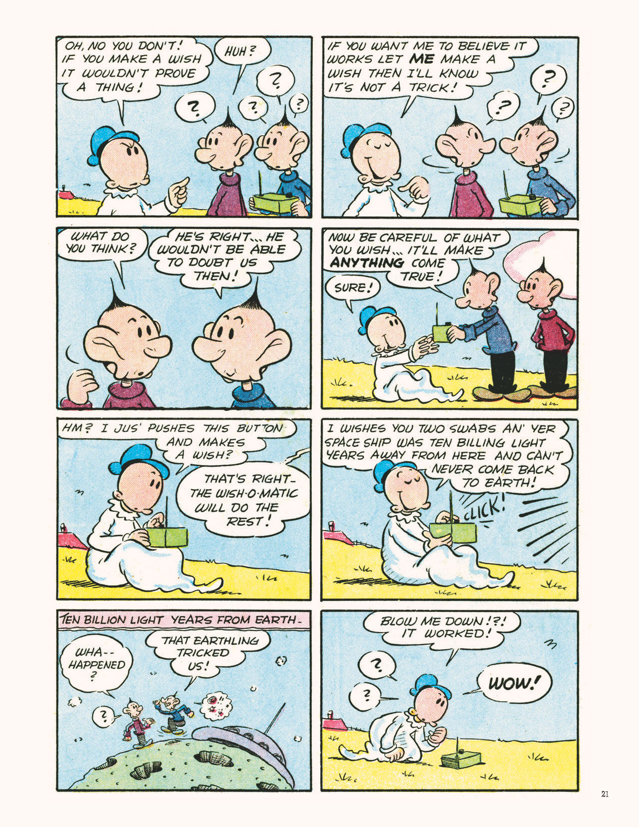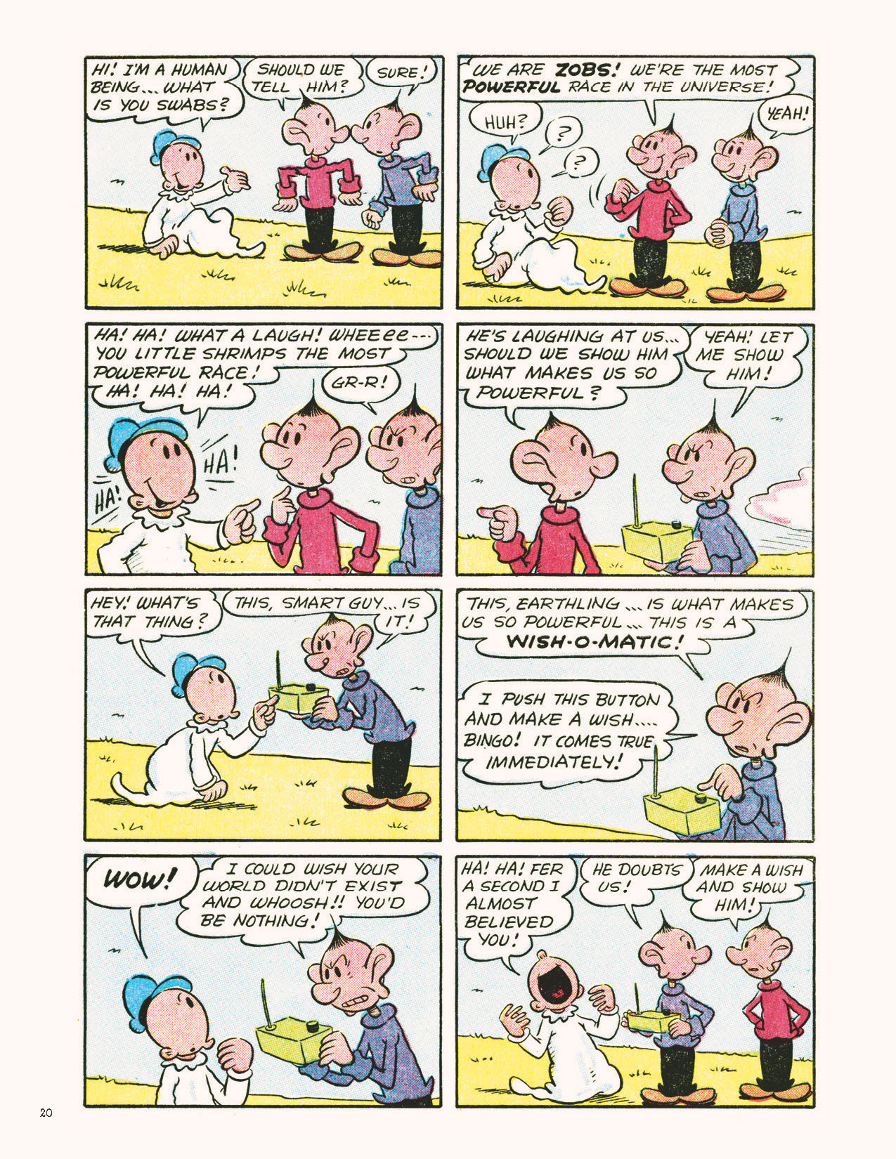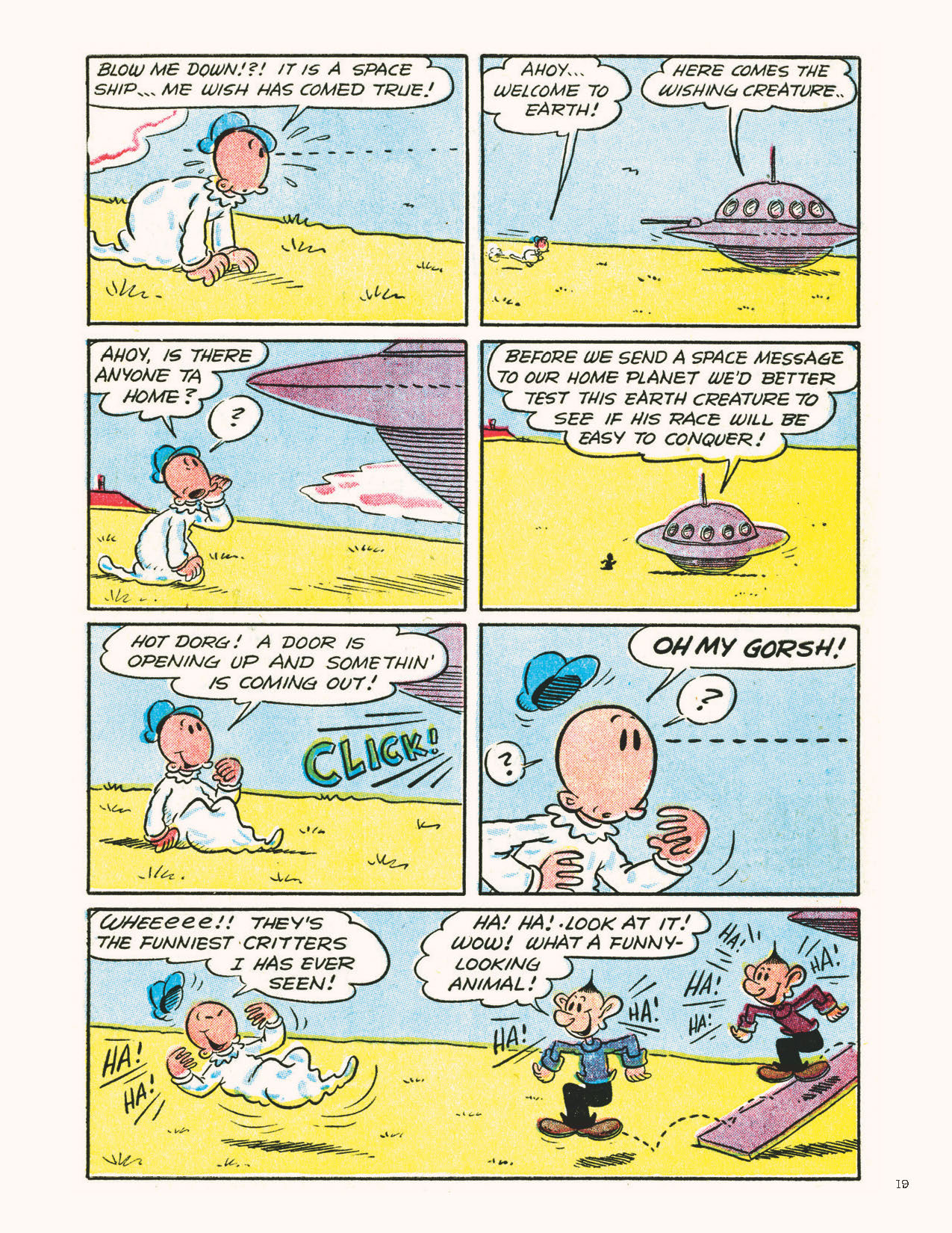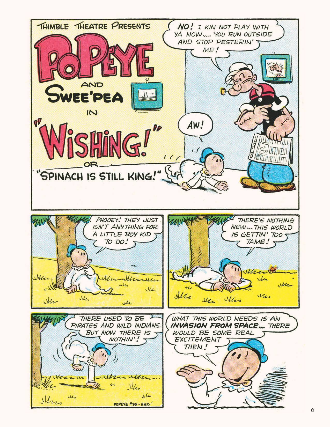 Another splendiferous volume of Popeye Classics (collect them all!). Cartoon Research yelps, “It’s rare that the comic book version of a popular comic strip is as good or better than the original. This is one of those rare exceptions. Sagendorf is immersed in Segar’s world. His storytelling abilities are superb and his cartooning is a joy to behold. Sagendorf owned this universe as much as Segar–other artists have been able substitutes, but Sagendorf knew these eccentric personalities inside and out!”