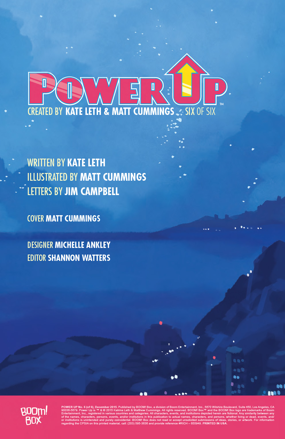 PreviewsBOOM! Box Previews Power Up #6 By Comix Asylum - Dec 14, 2015 0 610 FacebookTwitterPinterestWhatsApp Power Up #6 Imprint: BOOM! Box Writer: Kate Leth Artist: Matt Cummings Final issue! Amie, Silas, Sandy, and Kevin face the biggest baddie yet! Power Up #6 1 of 7