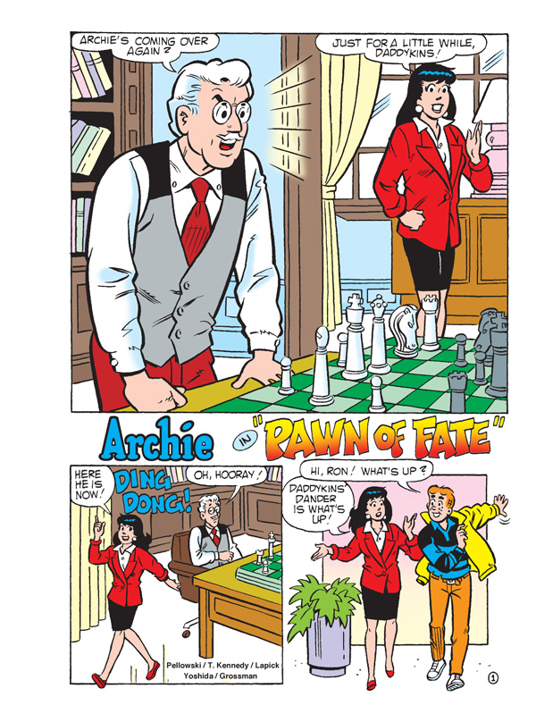 Archie wants to do something special for Betty’s birthday, so he decides to bake a cake—unfortunately, Archie’s never actually tried to bake a cake before! But how hard can it be? With his good pal Jughead by his side, he should be able to accomplish anything he sets his mind to. Providing, of course, that Jughead doesn’t eat everything before he even gets a chance to start baking! Will Archie give Betty the best birthday gift ever? Or is this plan a cake mistake? Find out in “Caketastrophe,” the fun lead story to this JUMBO-sized comics digest!