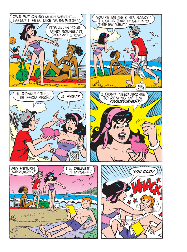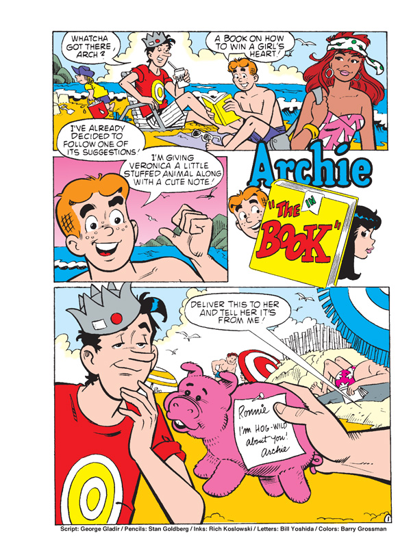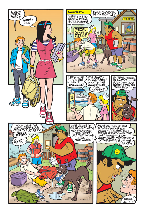 Get ready for even more pages of fun in this sun in this 192-page comics annual! Summer has arrived, the sun is shining, the weather’s getting warmer and Riverdale Lake is open for activities! And for Archie “summer activities” mean one thing: dating! Archie and Betty make a date to ride paddle boats at the lake—but Veronica wants in on the summer fun, too! When Archie actually *gasps* rejects Veronica in favor of Betty, could it be that our lovable player is changing—or will his day in the sun have him up a creek? Find out in “Unlucky Lake Date,” the fun lead story to this bonus-sized comics annual!