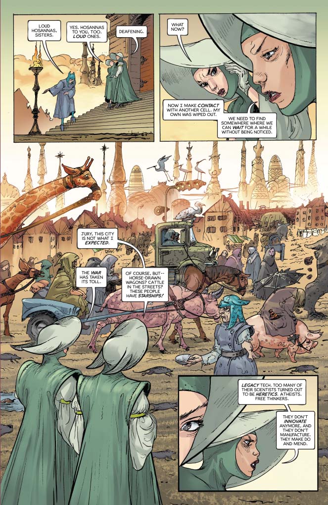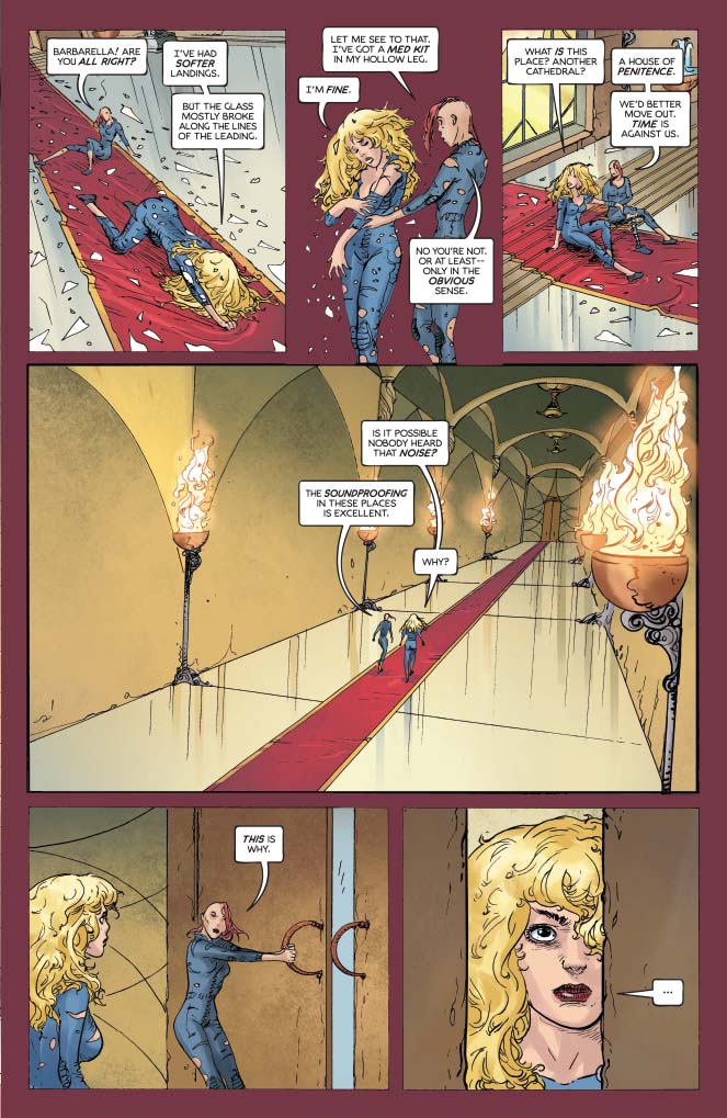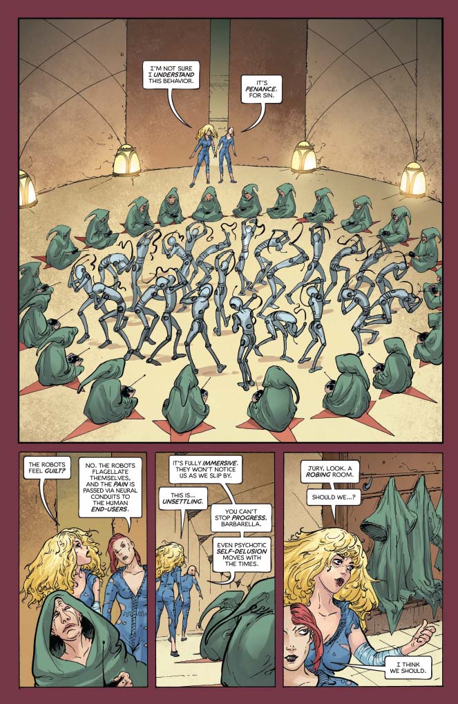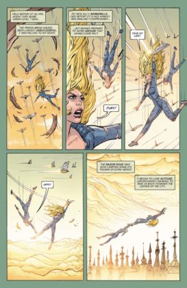 Our spacefaring heroine may have been enlisted by Earth’s underground, but that doesn’t mean she trusts her new allies. On the run in an alien city, hunting for a doomsday device that might end a war, Barbarella has to choose a side and stick to it. But it might not be the one you expect…