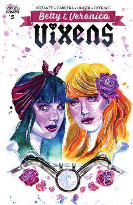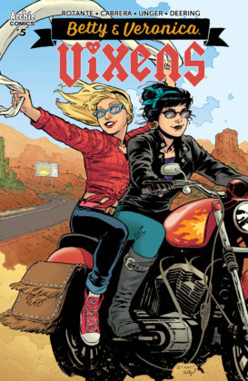 BETTY & VERONICA: VIXENS is an ongoing series by writer Jamie L. Rotante, artist Eva Cabrera, colorist Elaina Unger, and letterer Rachel Deering about the action-packed adventures of B&V in a motorcycle gang!