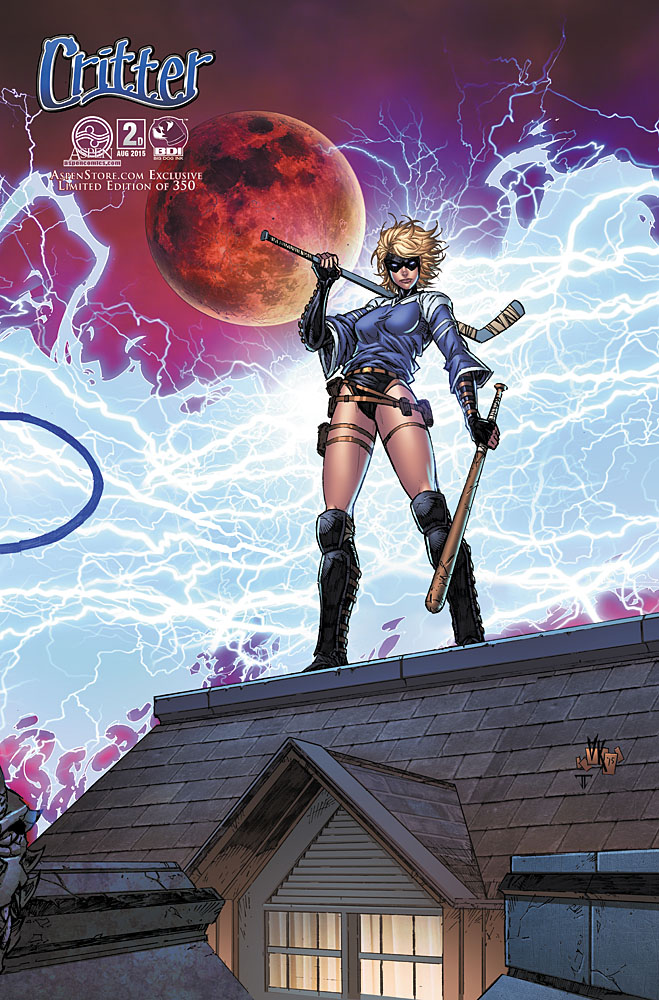 The newest re-mastered debut from Aspen’s Big Dog Ink imprint continues! College life may be a little more interesting when you have superheroes as guest speakers, yet there’s nothing better than slipping into your own superhero costume and heading out on an evening patrol at the beach – or so you’d think. Featuring re-mastered content, an exclusive behind-the-scenes look at Critter, creator commentary and more! Don’t miss out on the second of Aspen’s all new BDI launch titles with the return of CRITTER!