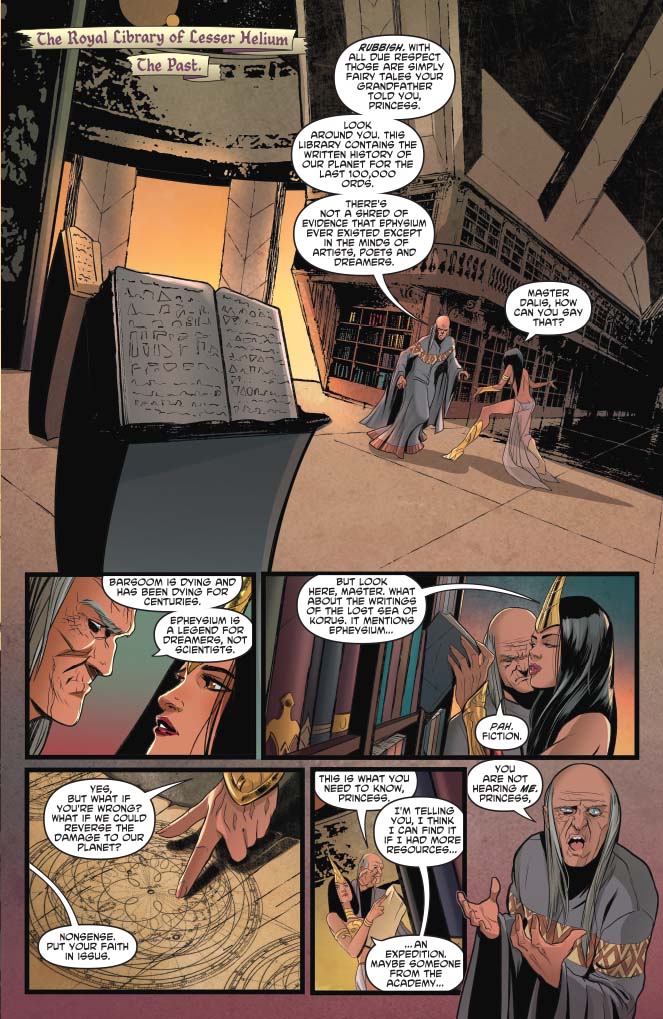 Dejah Thoris, obsessed with finding the legendary Gardens of Mars, recruits her own expedition team of scientists. But once outside the palace walls, things don’t go as planned, and the Princess learns the hard way just how dangerous Barsoom really is