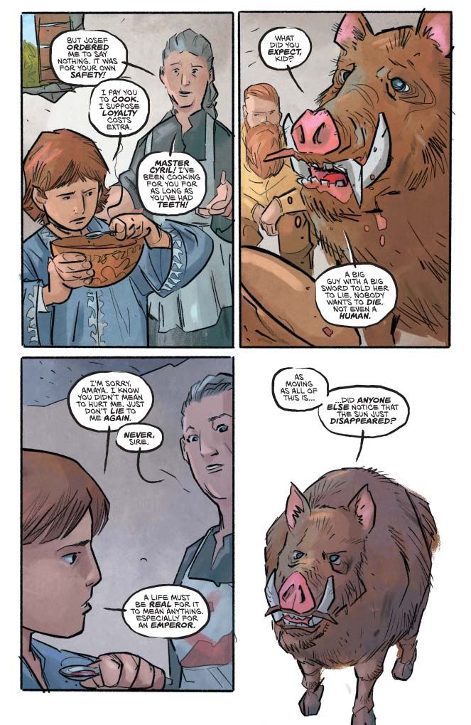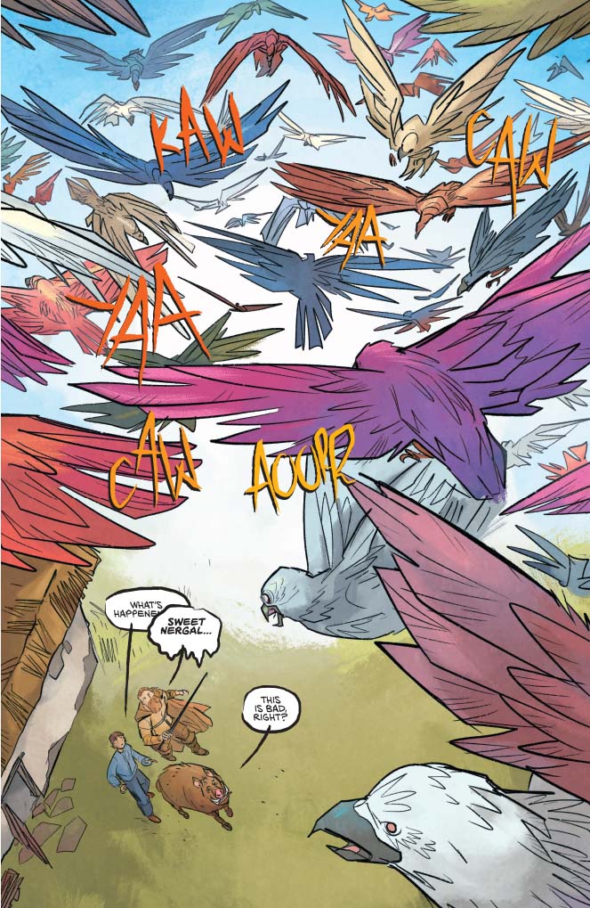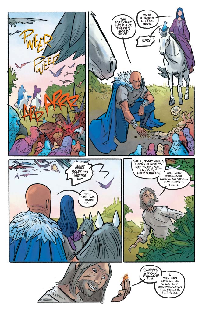 The boy that will kill Red Sonja encounters The Bird Overlord. Normally, the Overlord’s deadly birds seek only gold. But for the power this boy possesses, they may make an exception…  By MARK RUSSELL (Red Sonja, Year Of The Villain), BRYCE INGMAN (Edgar Allen Poe’s Snifter Of Terror) and CRAIG ROUSSEAU (The Flash).