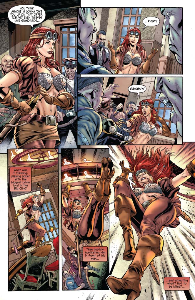 The last we saw of Red Sonja of the Legenderry world, she was living the pirate’s life aboard her ship, The Nautilus. But times have changed. As she tries to rebuild her life once again, she must save the Big City from two houses divided and the star-crossed love bringing them to the brink of war!