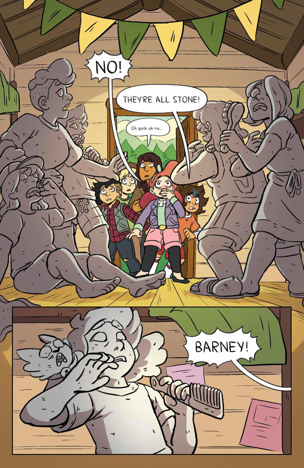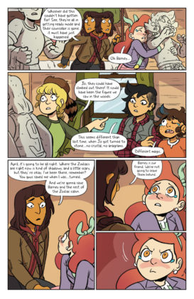 Synopsis: Barney is starting their official first week at camp, but it looks like everyone in the Zodiac Cabin has been turned to stone! Now that Diane’s back and strange shadows are appearing, it looks like April, Jo, Mal, Molly, and Ripley are going to have their hands full trying to find a cure for their friends…as long as they don’t look the wrong thing in the eye first. Collects issues #29-32