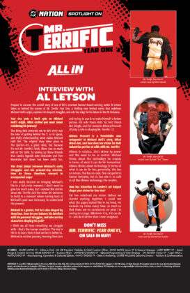 “I was really focused on bringing Michael’s life to a full-circle moment,” said Mr. Terrific: Year One writer Al Letson. “I don’t want to give too much away, but I wanted the stories about Mr. Terrific and the wider DC Universe to build to a moment where looking back at Michael’s past was necessary to understand the present.”