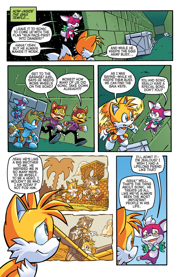 SONIC’S WORLD TOUR CONTINUES in, “Keys to Victory”: Sonic, Tails and Chip head to the Efrikan settlement of Mazuri to find the next set of Gaia Keys—but they’ll have to go through the tough and menacing Axel, the Egg Boss of the Efrika Egg Army, to find them! While deep in the heart of the Gaia Temple, Chip finds something incredible—but you’ll just have to wait and see what it is! Then, in “A Special Occasion,” Sally and Rotor are one girl’s only hope in a family emergency! Featuring awesome cover art by jamming Jamal Peppers and an “Altered Beast” variant by the exquisite Erik Ly!