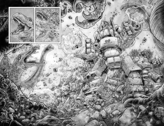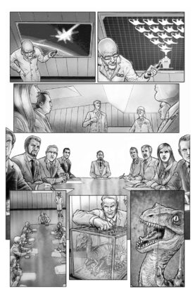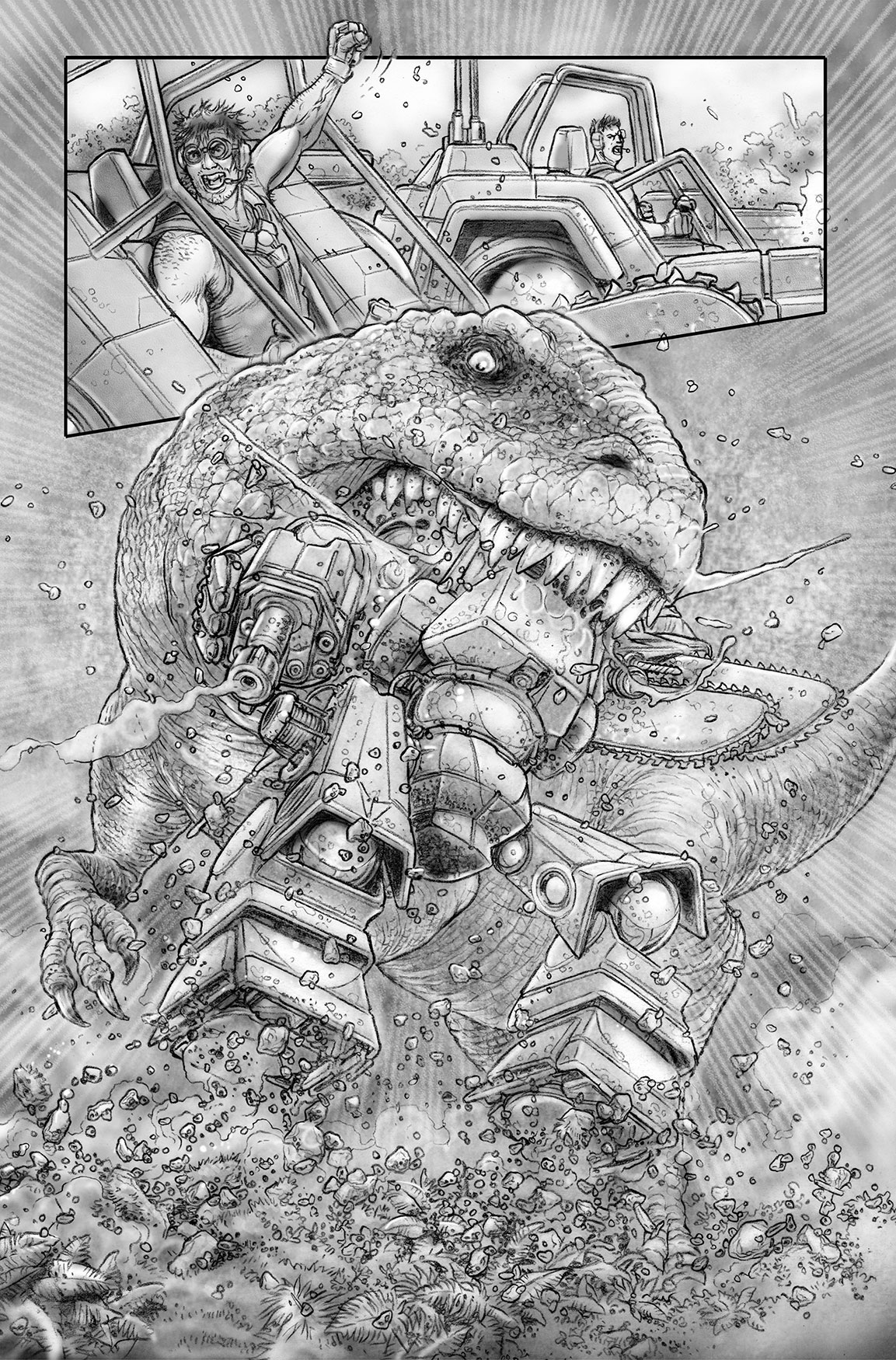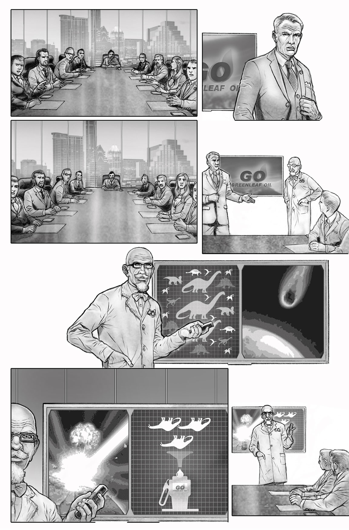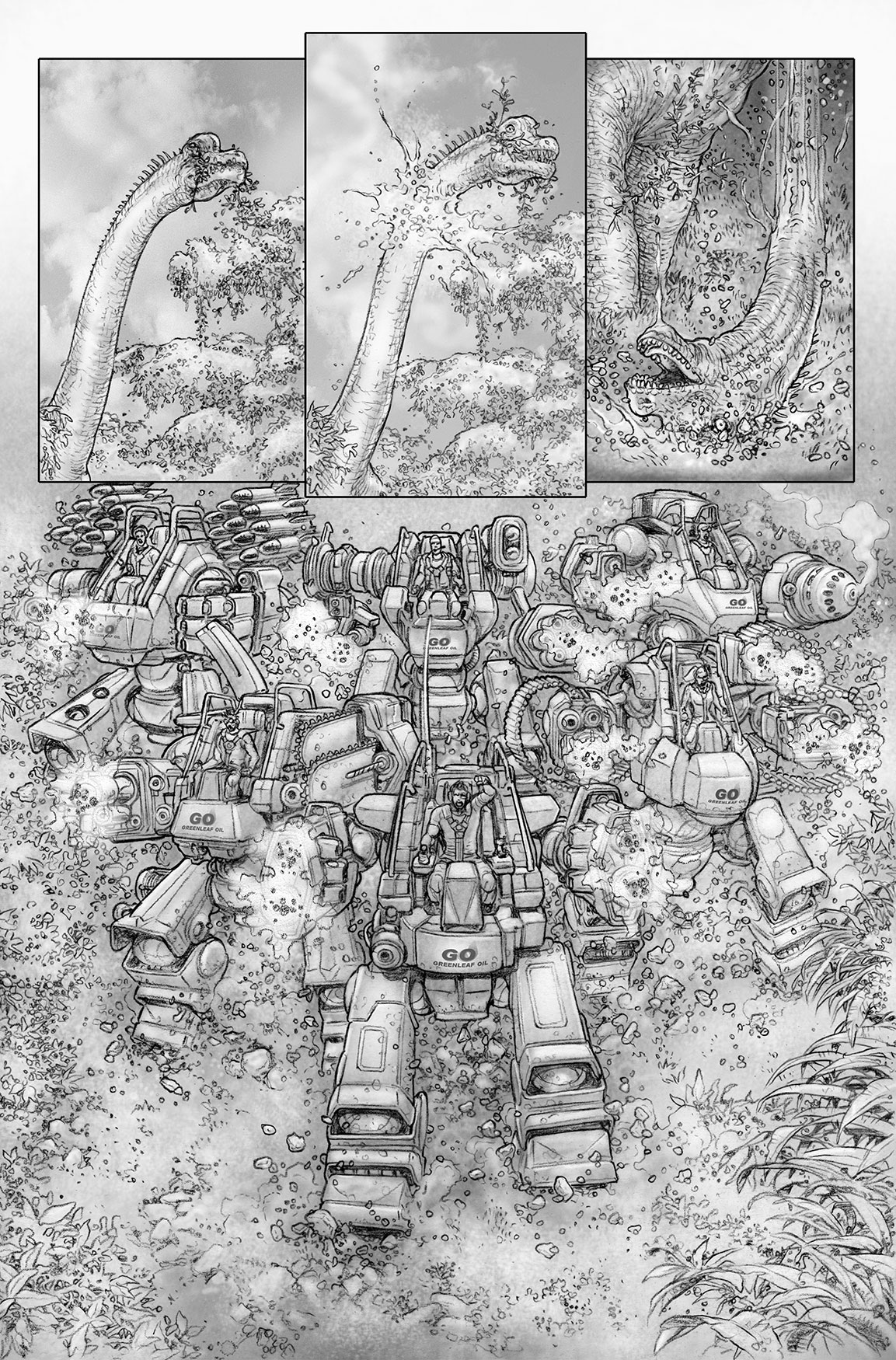 The CEO of global energy conglomerate Greenleaf Oil has just discovered a terrifying secret: the planet only has a decade or less of petroleum left before it’s gone forever. But he has a plan to make sure his great-great grandchildren can continue to generate maximum shareholder value – and secure his own legacy in the process. Rather than develop a game-changing renewable energy source through the power of corporate innovation, Greenleaf has perfected the next best thing – time travel (duh) – so that a team of six field-rat contractors armed to the teeth in individually customized mech suits can go back to the Cretaceous Period, tweak the trajectory of the meteor that killed the dinosaurs, and give mankind another 500 millennia worth of oil reserves. What could go wrong? Only all of human history, of course – because when Greenleaf’s team of Tankers come home, they’ll discover that not only did the dinosaurs never die out, they’ve kept evolving for another 60 million years…and they’re more pissed off than ever.