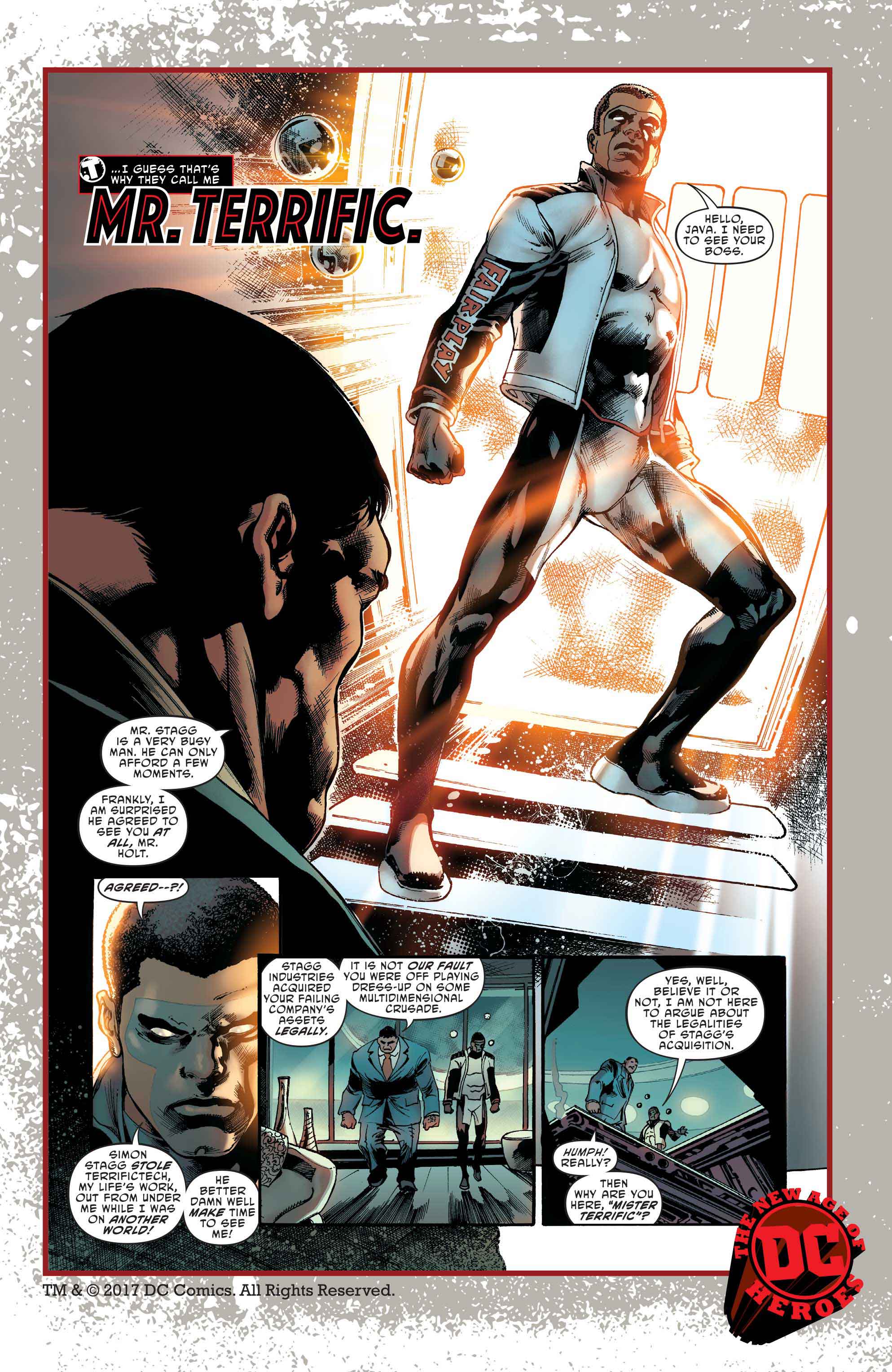 Bound together by fate, and united by the spirit of exploration and hope for tomorrow, the Terrifics are bound from the Dark Multiverse of Metal! When Mr. Terrific, Metamorpho, Plastic Man and Phantom Girl find themselves literally bound together by a tragic accident, our team of unlikely allies must rely on one another to make their way back home. But a startling revelation on their return trip brings them face to face with a new mystery: Where in the universe is Tom Strong?