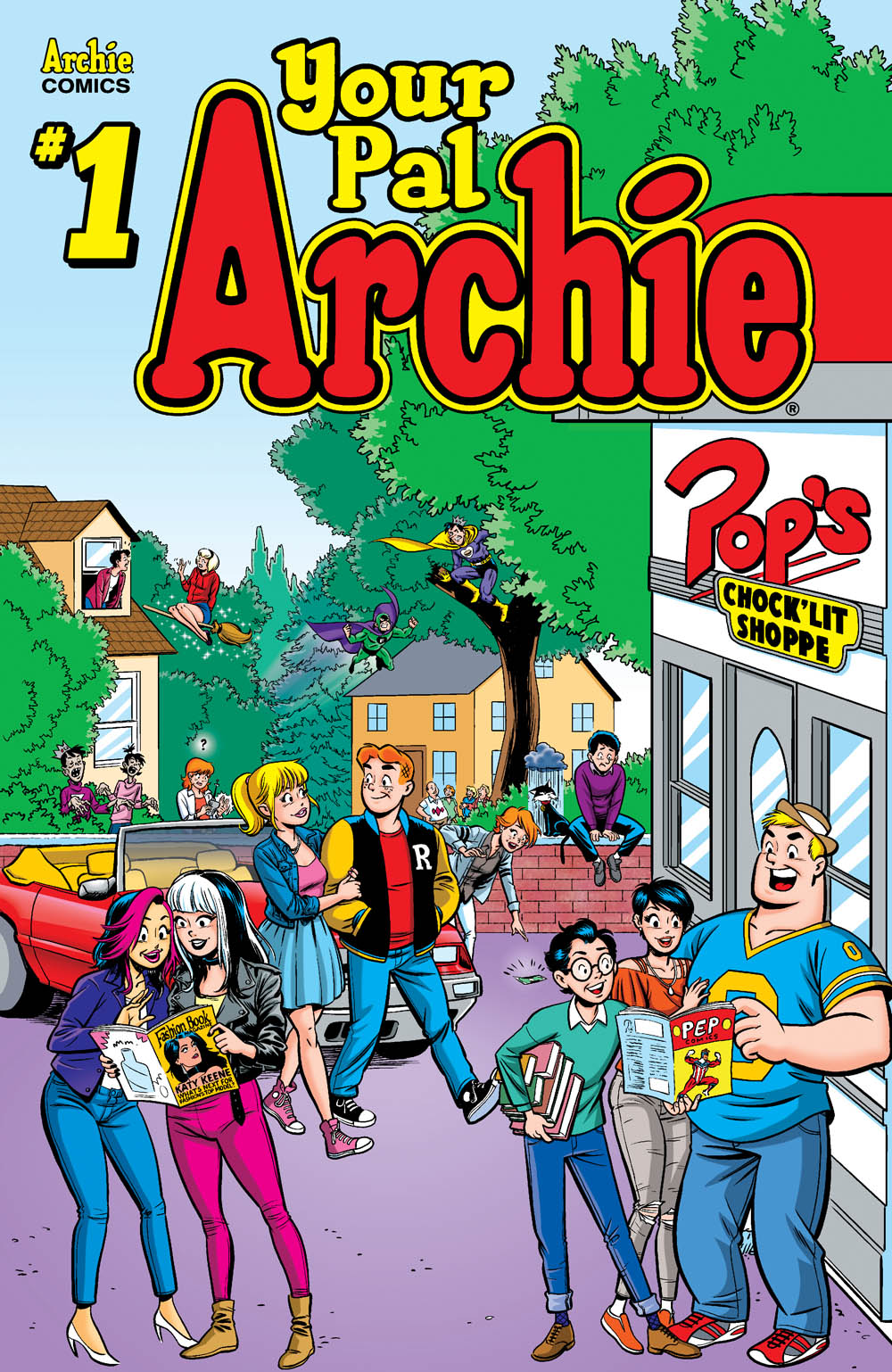 Classic-style Archie makes his return in this ALL-NEW, ALL-AGES comic from Ty Templeton and Dan Parent! Issue 1 features one of five connecting variant covers by Les McClaine. Collect them all to create one giant image of Pop’s Chock’lit Shop!