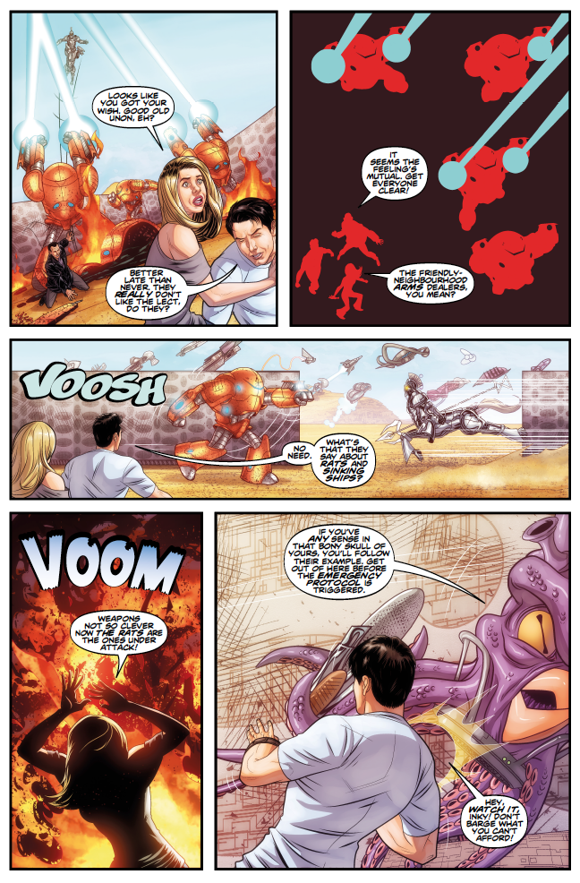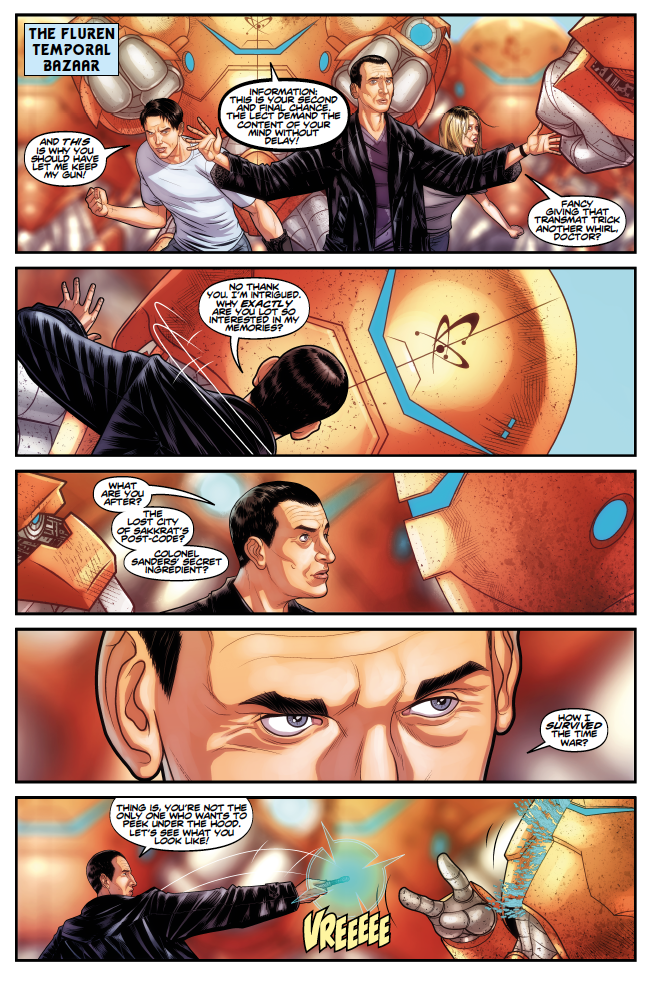 The hotly-anticipated Weapons of Past Destruction continues, as the Doctor, Rose and Jack are trapped in an alien bazaar, caught in a heavily-armed standoff between the overpowered Unon and the Lect – as the nearby star threatens to go supernova!