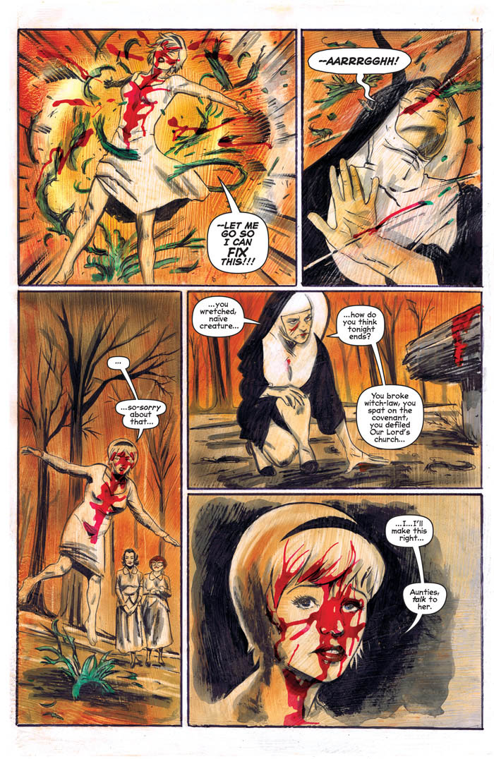 There are some things in this world that mortal eyes should never witness — that’s a lesson poor Harvey Kinkle will learn the hard way, when he makes the unfortunate mistake of intruding on the darkest of ceremonies — an offense that the witches’ coven takes very seriously. Though Harvey’s life hangs in the balance, it is the Spellman family that will come face-to-face with true evil. Indeed, the choices made by teen-witch-in-training Sabrina on this dread night will determine the fate of every living soul in Greendale.