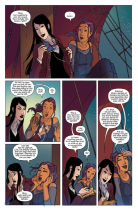 Jeremy Whitley follows up by saying, “RAVEN: PIRATE PRINCESS is back and it’s bigger, more action packed, and packed full of feels than ever. This is the perfect place to pick the series back up or jump on for the first time! We can’t wait to be back to talking to you about it on twitter!”