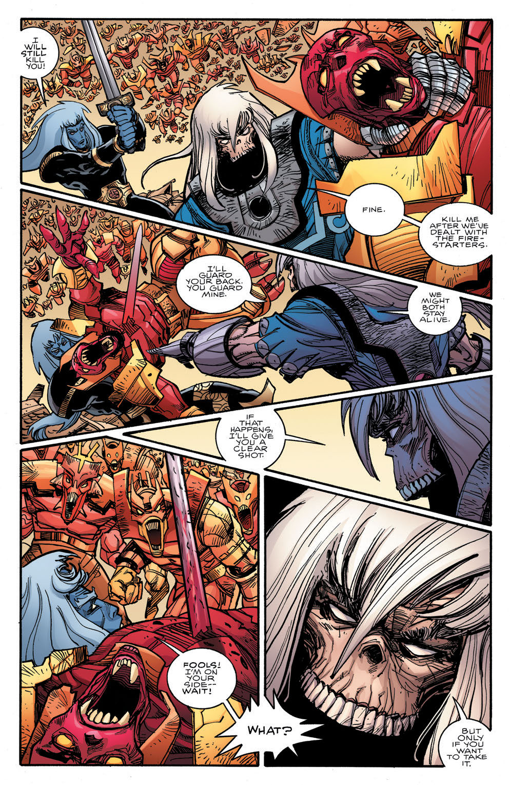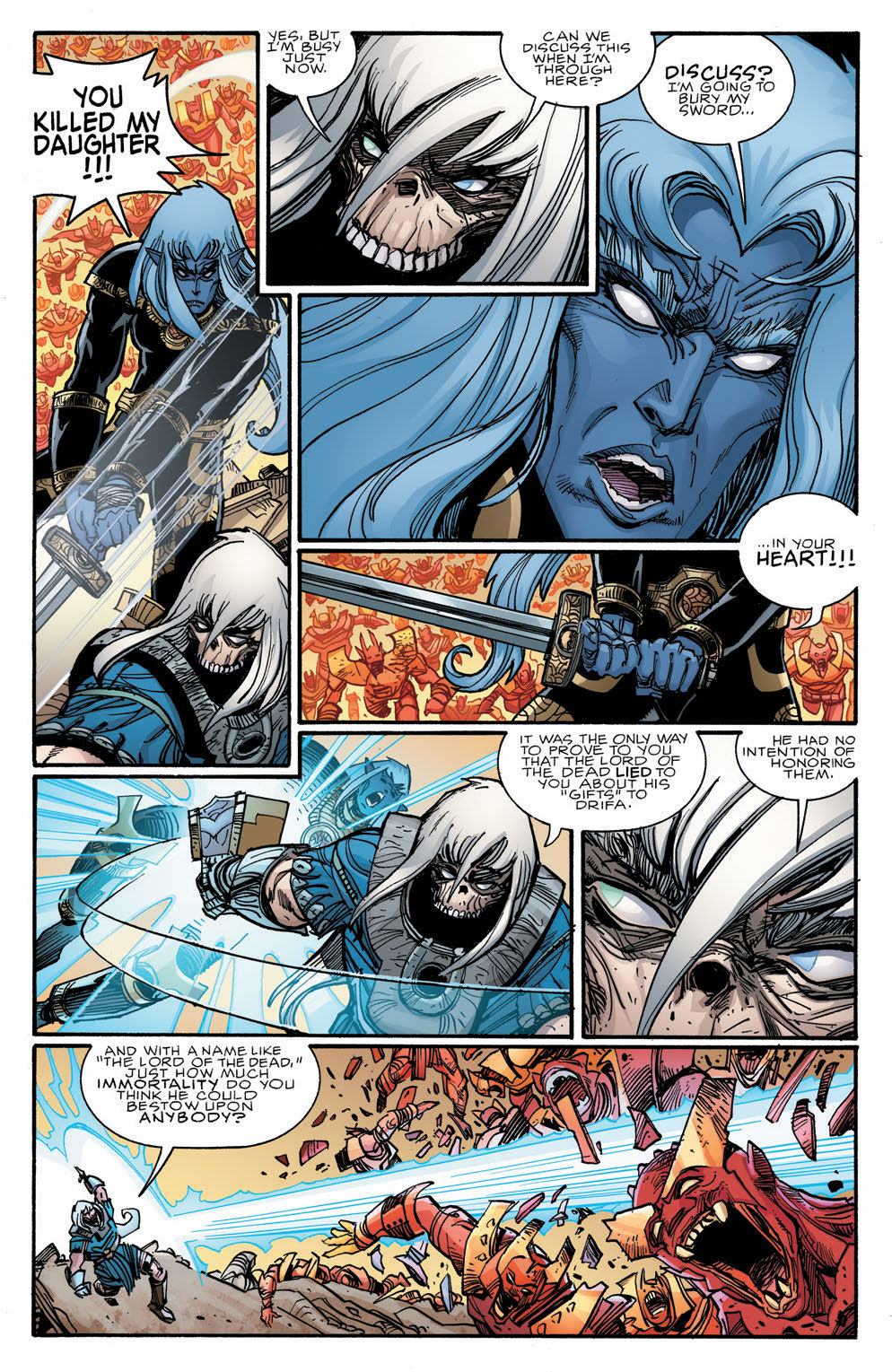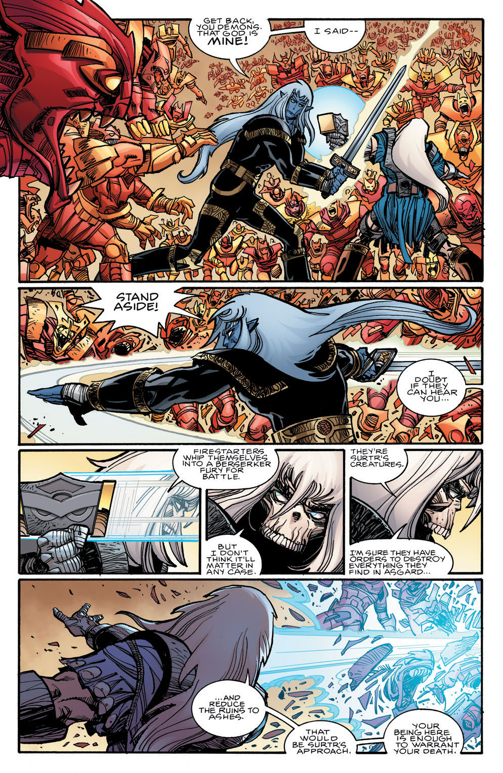 With his dead child behind him, and a thousand burning demons before, the Black Elf assassin, Regn, fights furiously alongside Thor, so that after the battle, he and he alone can kill the God of Thunder.